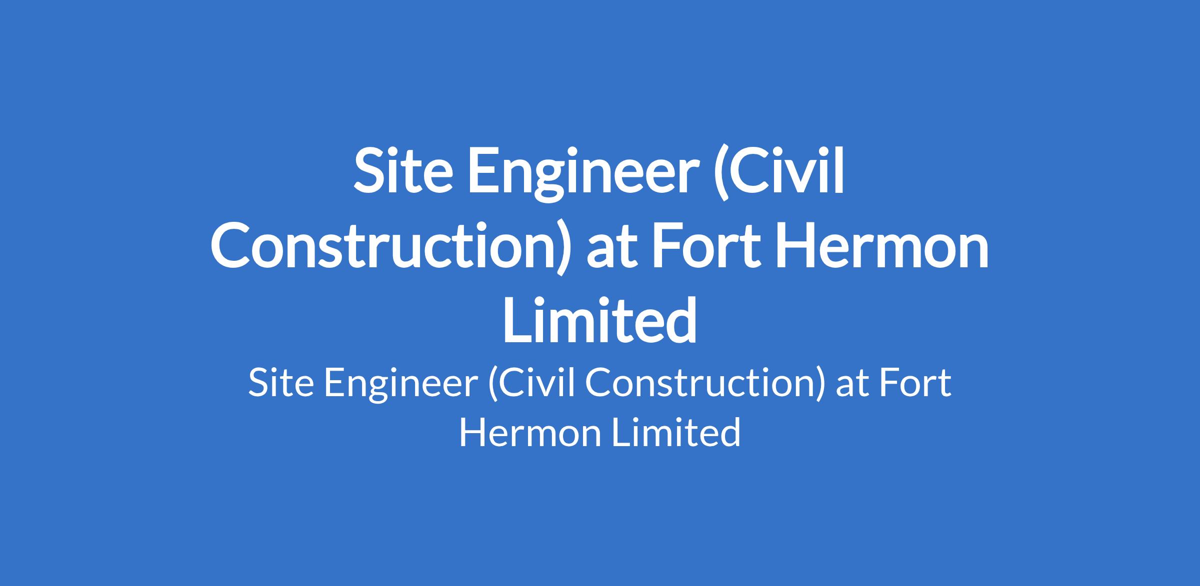 Fort Hermon Limited is recruiting to fill the position of: Site Engineer (Civil Construction). The position is located in Lagos State. Salary: N250,000 - N350,000 monthly. Interested candidates should possess a Bachelor`s Degree with 5 - 8 years experience.