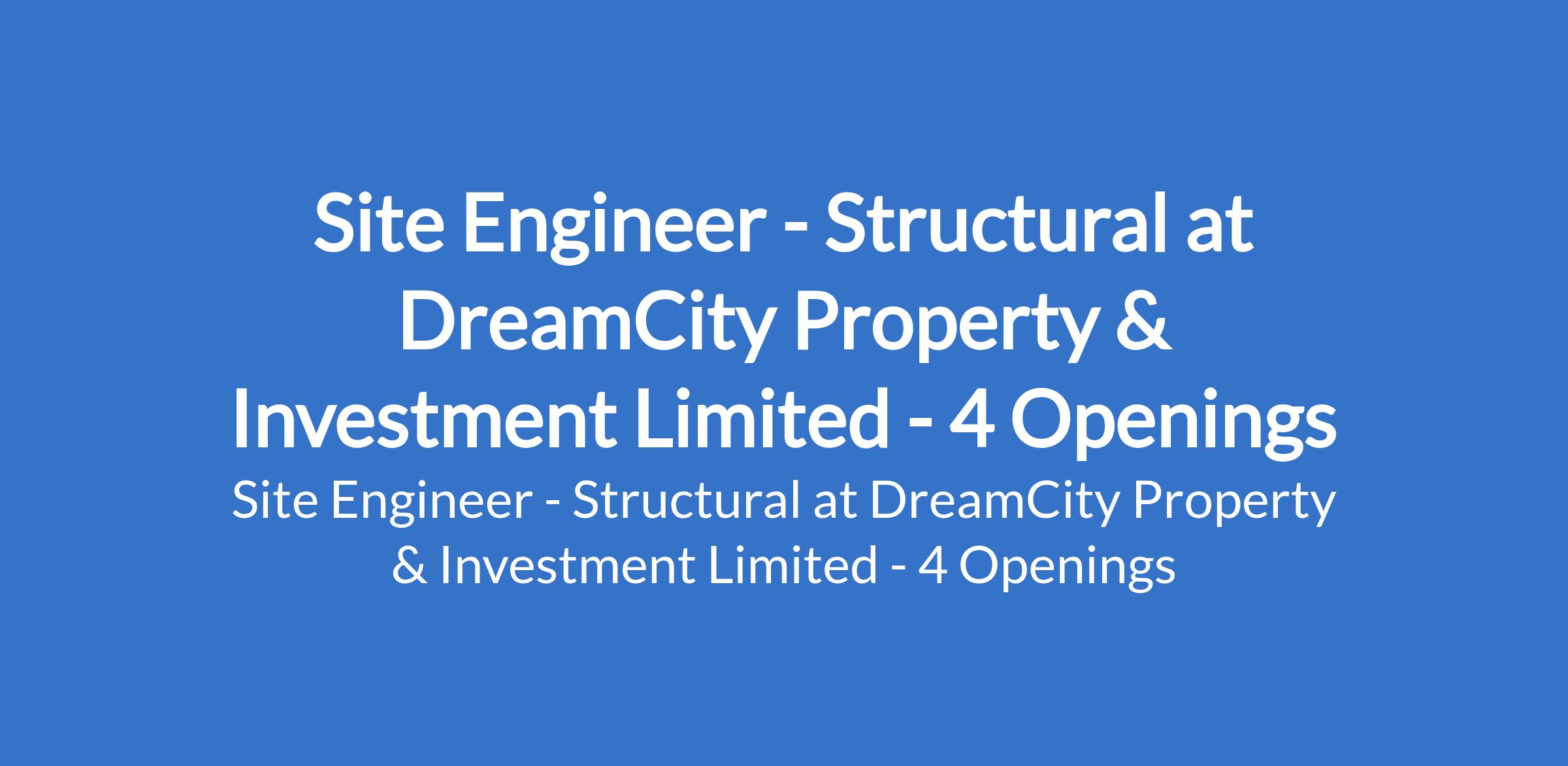 DreamCity Property & Investment Limited is recruiting to fill the position of: Site Engineer - Structural. The position is located in Abuja (FCT), & Lagos State. Interested candidates should possess an HND / Bachelor's Degree in any relevant field with a minimum of 5 years of relevant experience as a Site Structural Engineer in the real estate and property construction industry.