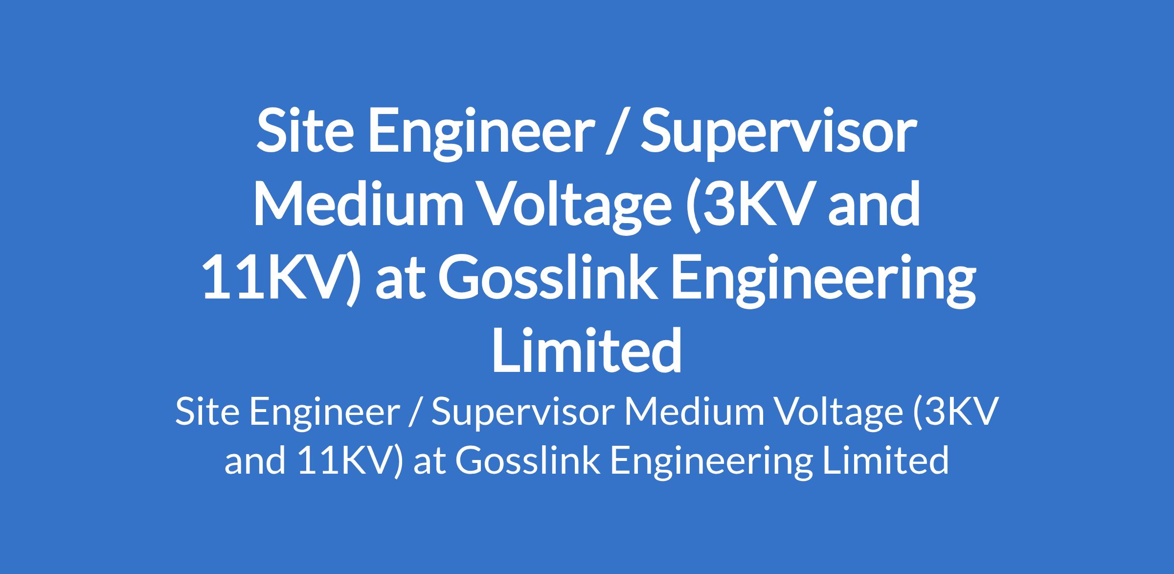 Gosslink Engineering Limited is recruiting to fill the position of: Site Engineer / Supervisor Medium Voltage (3KV and 11KV). The position is located in Ikoyi, Lagos State. Interested candidates should possess an HND, B.Sc, or equivalent qualification in Electrical Engineering or related disciplines with a minimum of 10 years proven experience in power distribution projects.