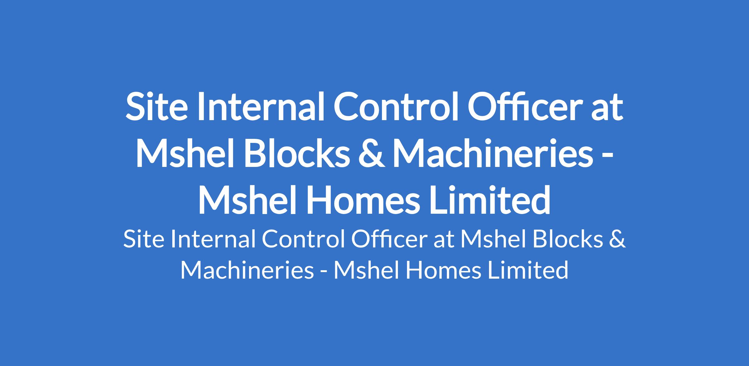 Mshel Blocks & Machineries, a subsidiary of Mshel Homes is recruiting to fill the position of: Site Internal Control Officer. The position is located in Abuja. Salary: N200,000 - N300,000 monthly. Interested candidates should possess relevant qualifications with a minimum 5 years of experience in construction, engineering, or a related field.