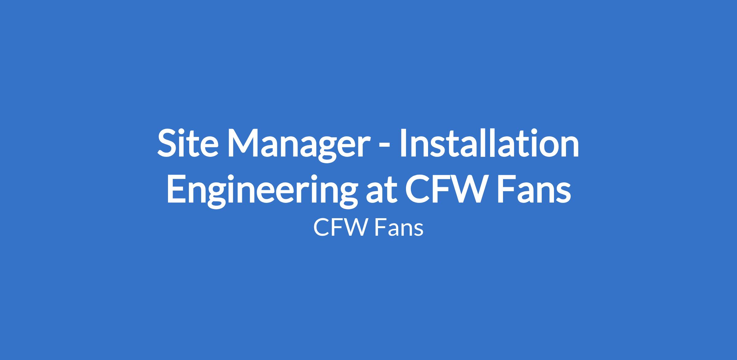 Site Manager - Installation Engineering at CFW Fans