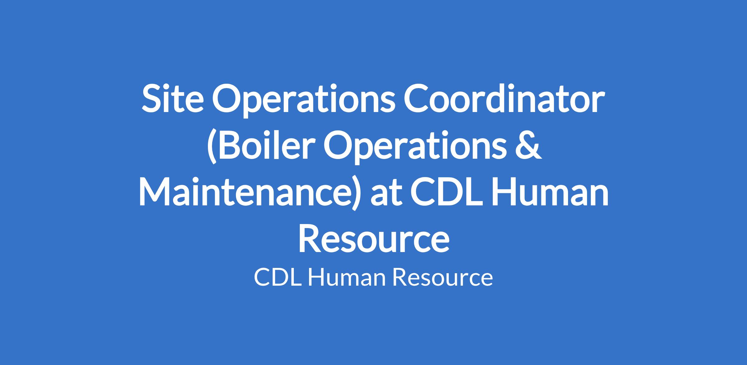 Site Operations Coordinator (Boiler Operations & Maintenance) at CDL Human Resource