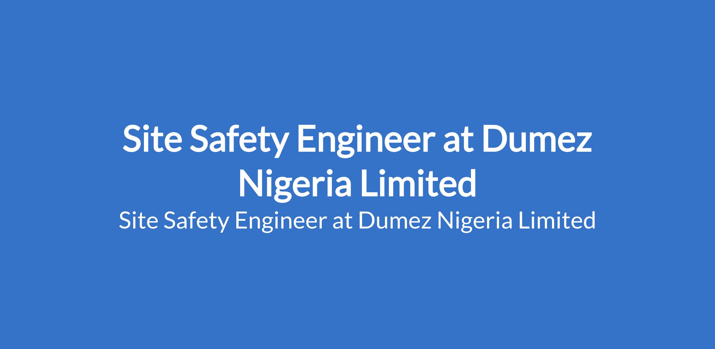 Dumez Nigeria Limited is recruiting to fill the position of: Site Safety Engineer. The position is located in Ikoyi, Lagos State. Salary: N350,000 monthly. Interested candidates should possess a relevant Engineering Bachelor's Degree (Environmental, Civil, Building) and relevant Engineering and Safety certifications; COREN, CORBON, or equivalent with 7 - 12 years of work experience.
