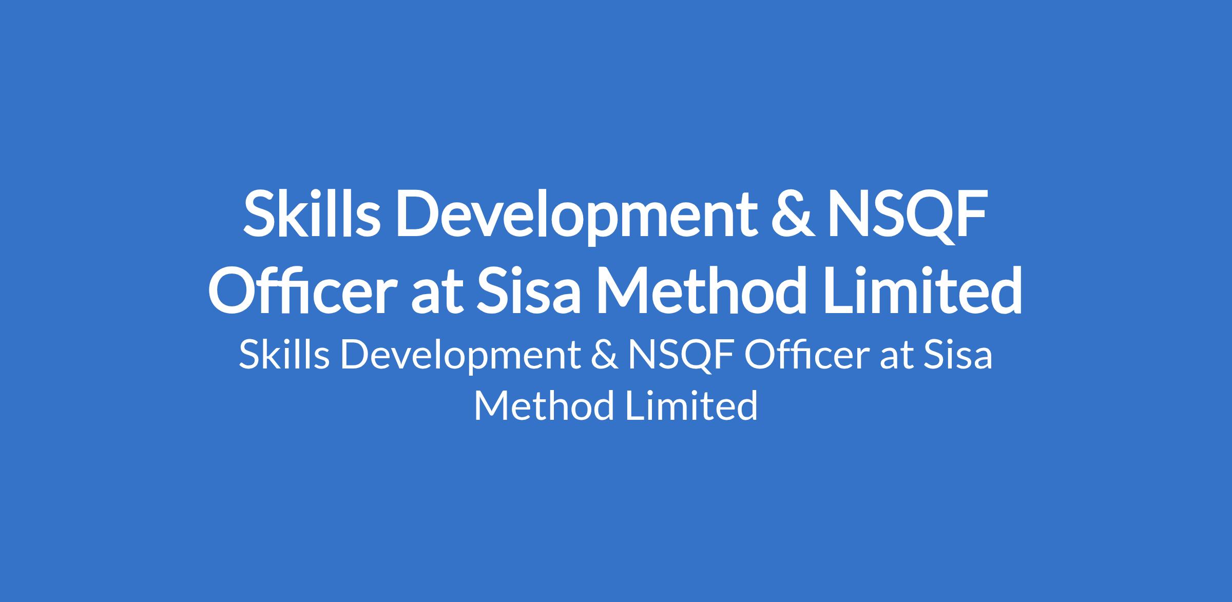 Sisa Method Limited is recruiting to fill the position of: Skills Development & NSQF Officer. The position is located in Lagos State. Interested candidates should possess a Bachelors Degree in Education, Vocational Training, Human Development, or a related field with 35 years of experience in vocational training, TVET, workforce development, or skills programmes.