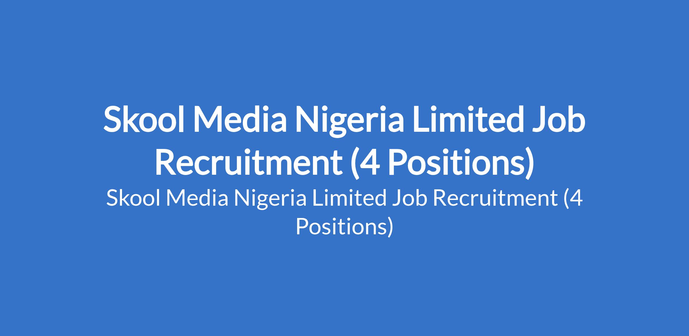 Skool Media Nigeria Limited Job Recruitment (4 Positions)