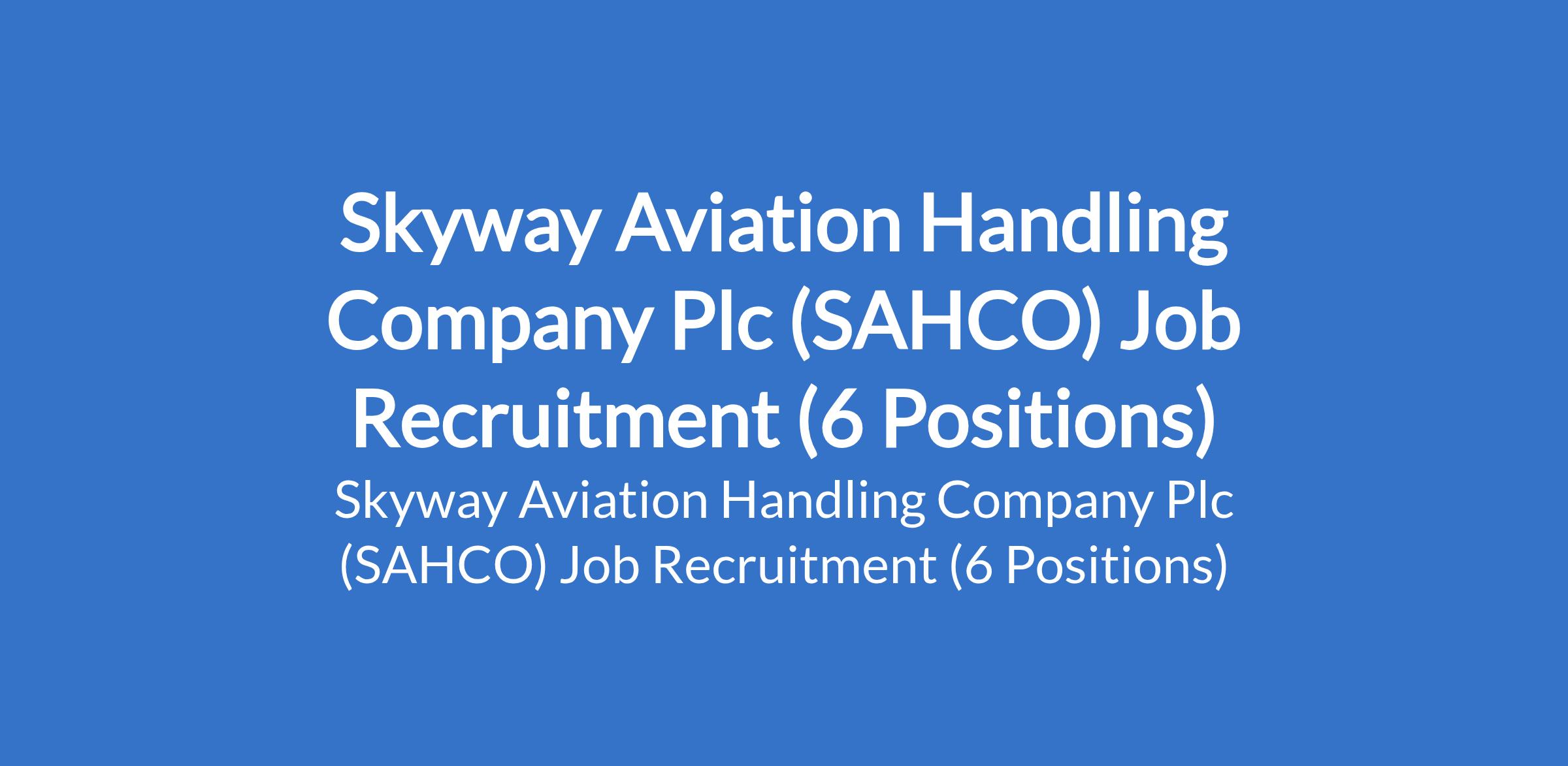 Skyway Aviation Handling Company Plc (SAHCO) is recruiting suitable candidates to fill the following positions in Cross River, Rivers, and Akwa Ibom States: Aircraft Appearance Officer, Security Operative, GSE Operator, Ramp Assistant, Airport Services Executive, and Technical Executive.