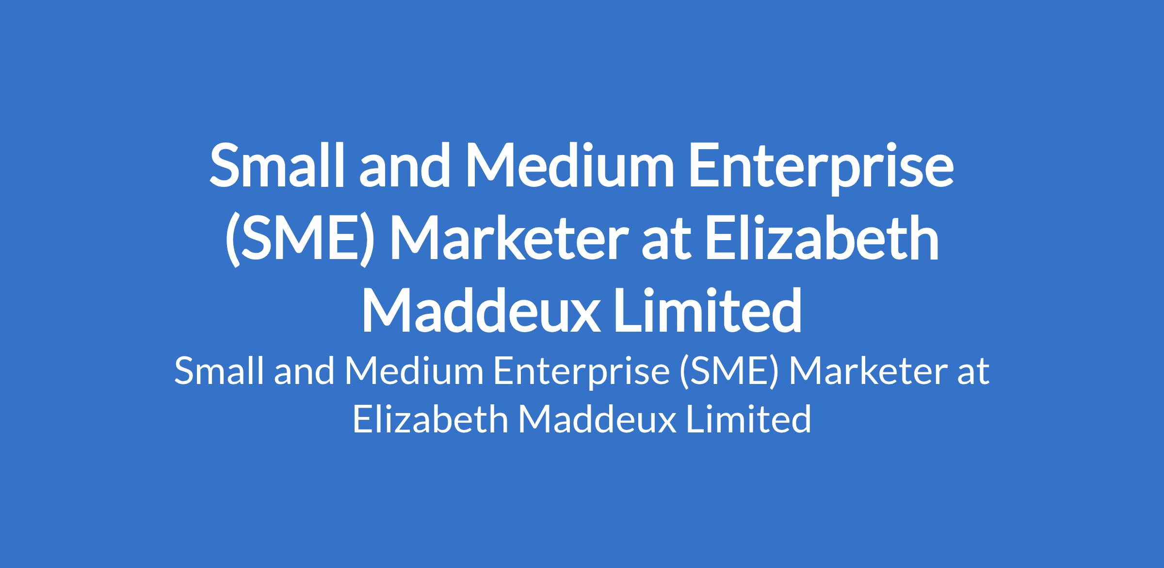 Elizabeth Maddeux Limited is recruiting to fill the position of: Small and Medium Enterprise (SME) Marketer. The position is located in Ikeja, Lagos State. Salary Range: N300,000 Gross monthly. Interested candidates should possess a Bachelors Degree in Business Administration, Marketing, Banking & Finance, Economics, or related field with 3 - 5 years experience in SME banking, sales, or business development.