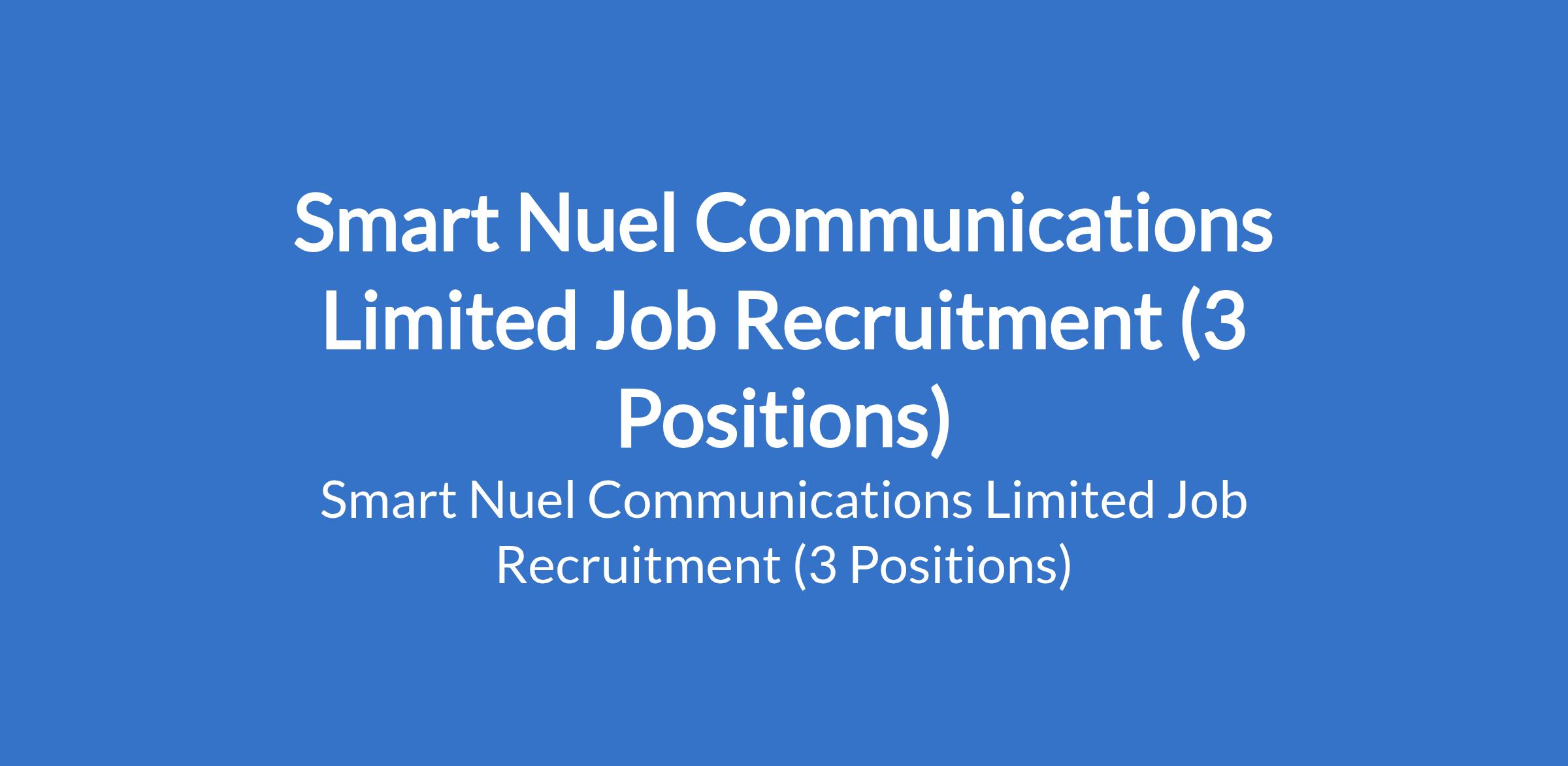 Smart Nuel Communications Limited Job Recruitment (3 Positions)