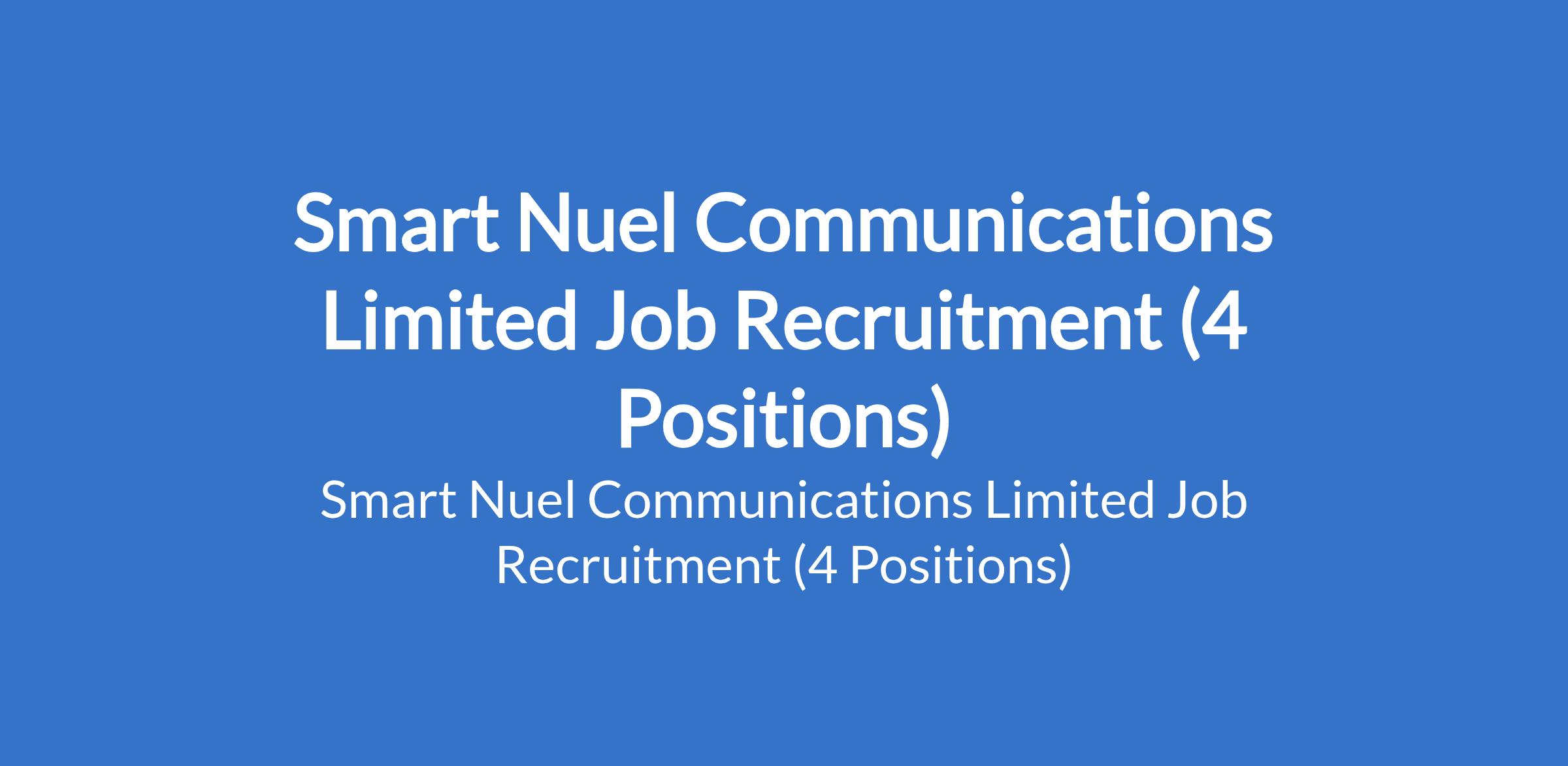 Smart Nuel Communications Limited Job Recruitment (4 Positions)