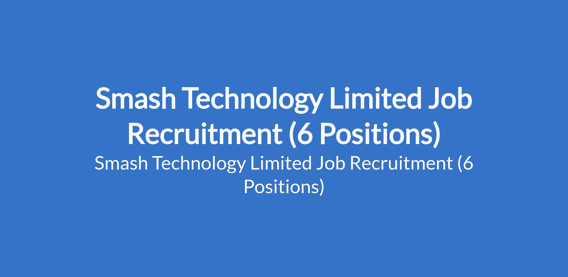 Smash Technology Limited is recruiting suitably qualified candidates to fill the following positions in Abuja (FCT) and Lagos State: Customer Support - Sales Officer, HR / Admin Assistant, Customer Service Officer, Head of Operations, Branch Manager, and Female Personal Executive Assistant.