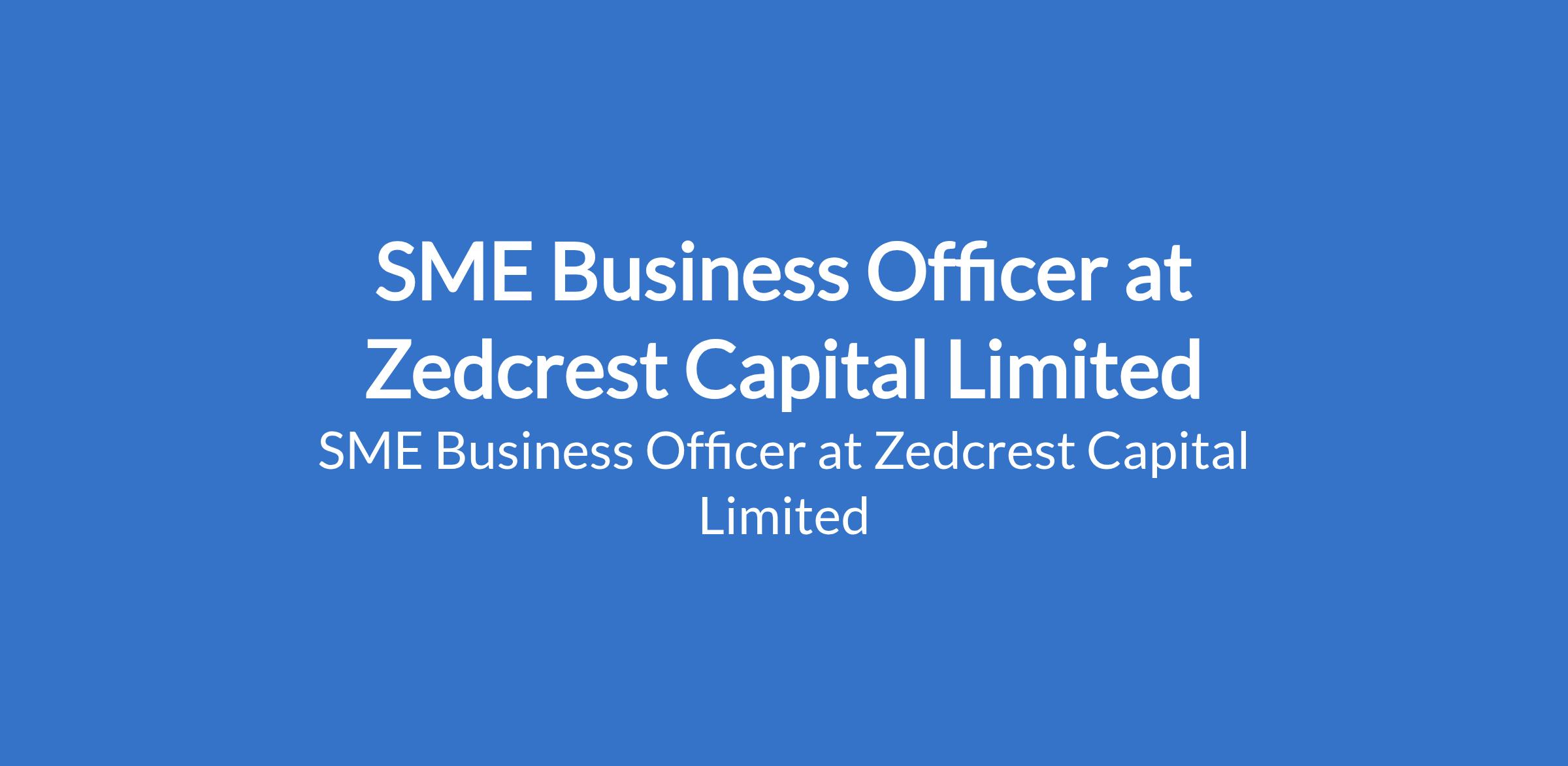 Zedcrest Capital Limited is recruiting to fill the position of: SME Business Officer. The position is located in Lagos State. Interested candidates should possess a Bachelors Degree in Business, Finance, Economics, or related fields with 0 - 2 years experience in sales or customer service.