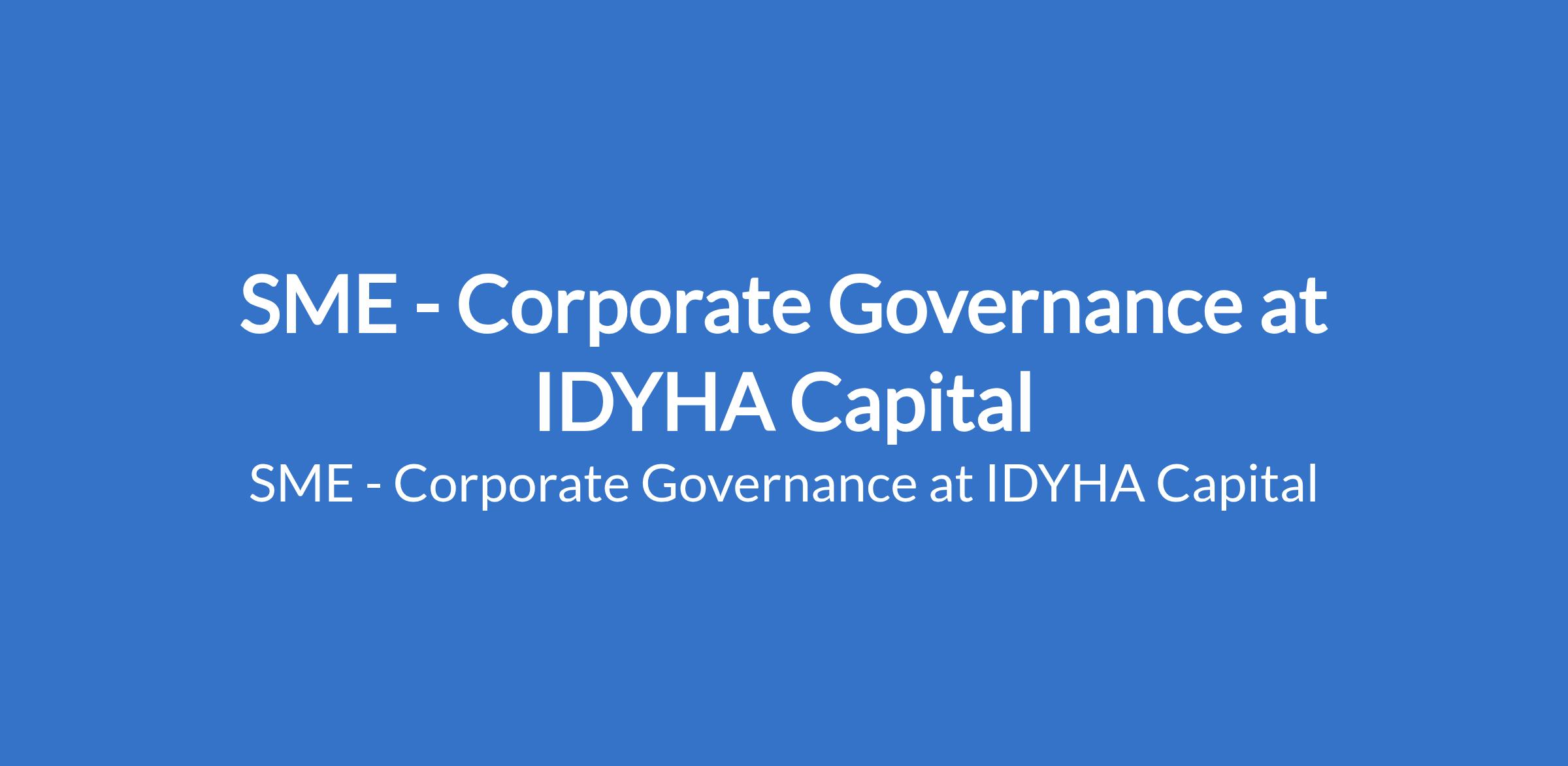 IDYHA Capital is recruiting to fill the position of: SME - Corporate Governance. The position is located in Lagos State. Interested candidates should possess relevant qualifications.