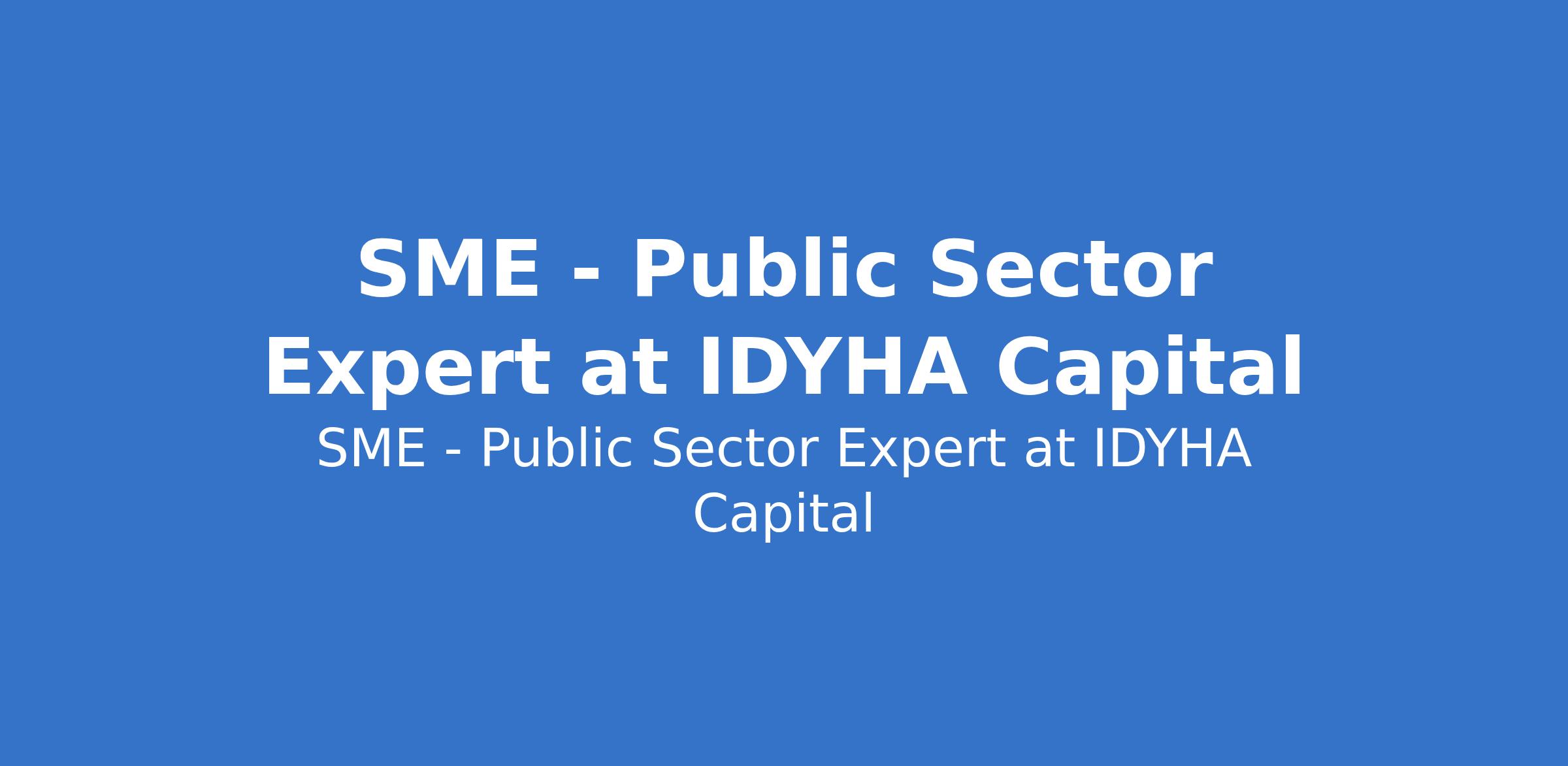 SME - Public Sector Expert at IDYHA Capital
