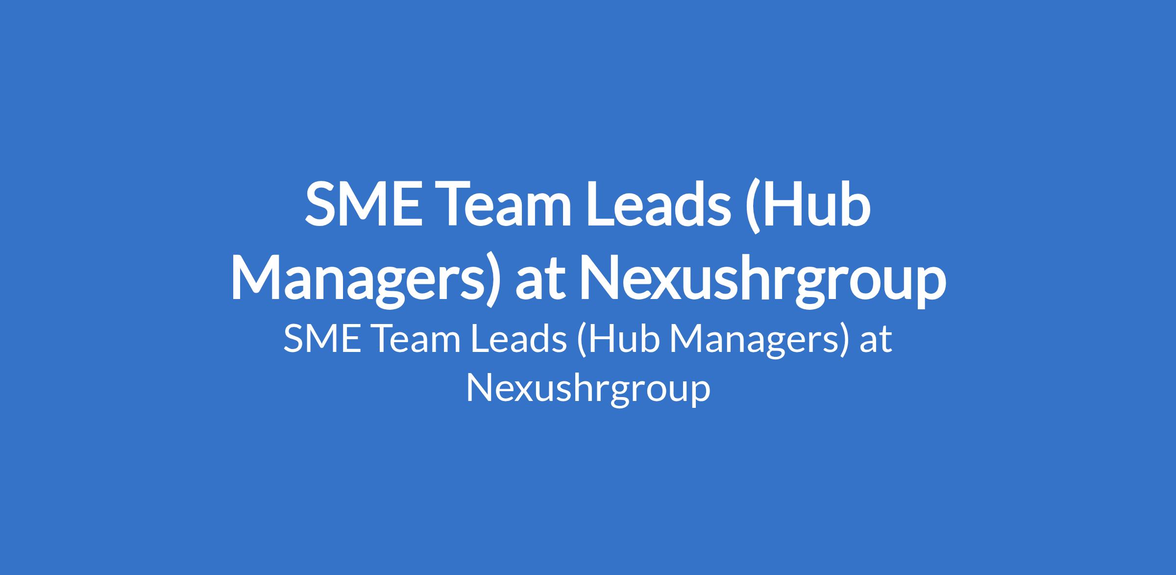 SME Team Leads (Hub Managers) at Nexushrgroup