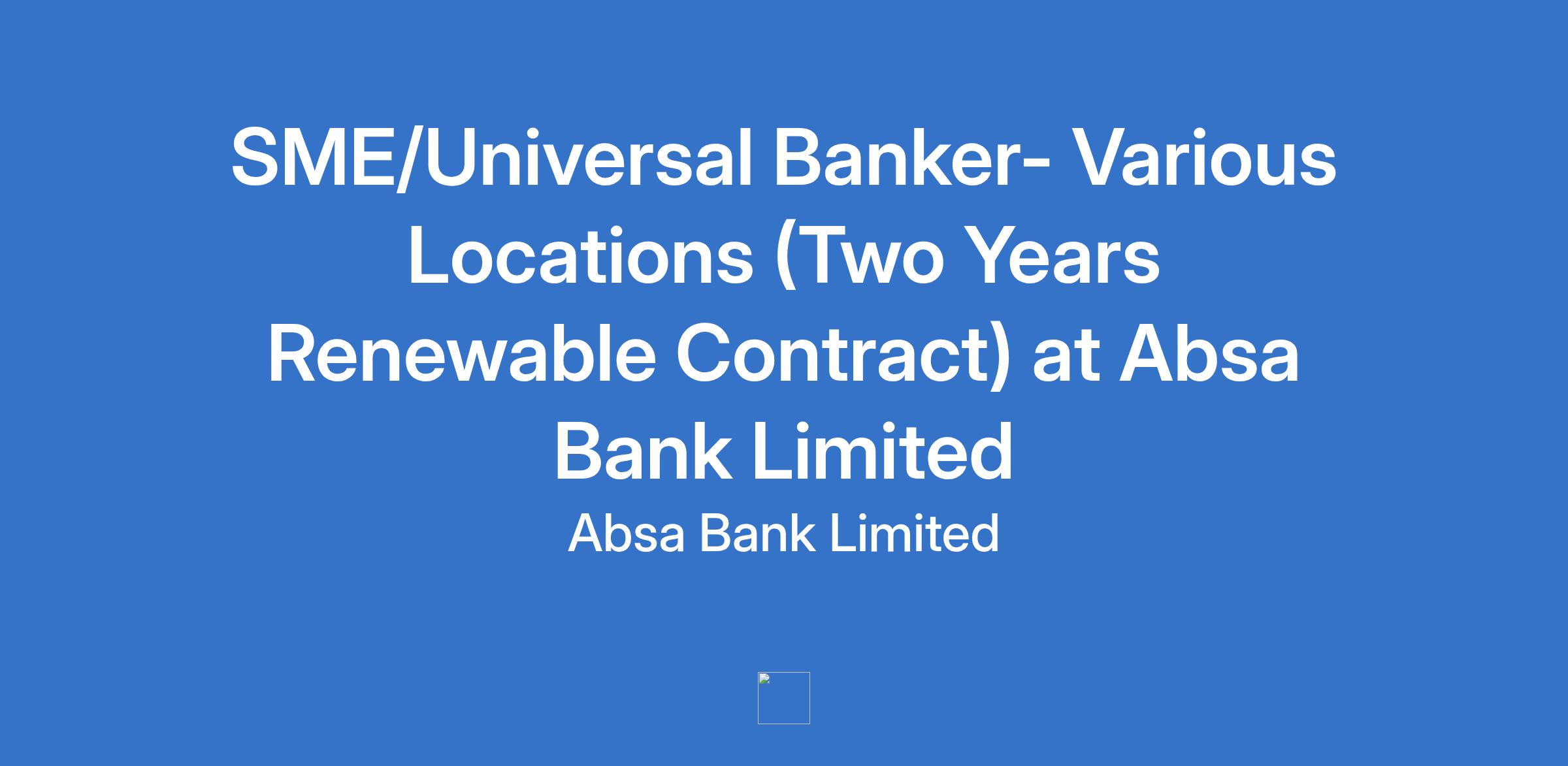 SME/Universal Banker- Various Locations (Two Years Renewable Contract) at Absa Bank Limited