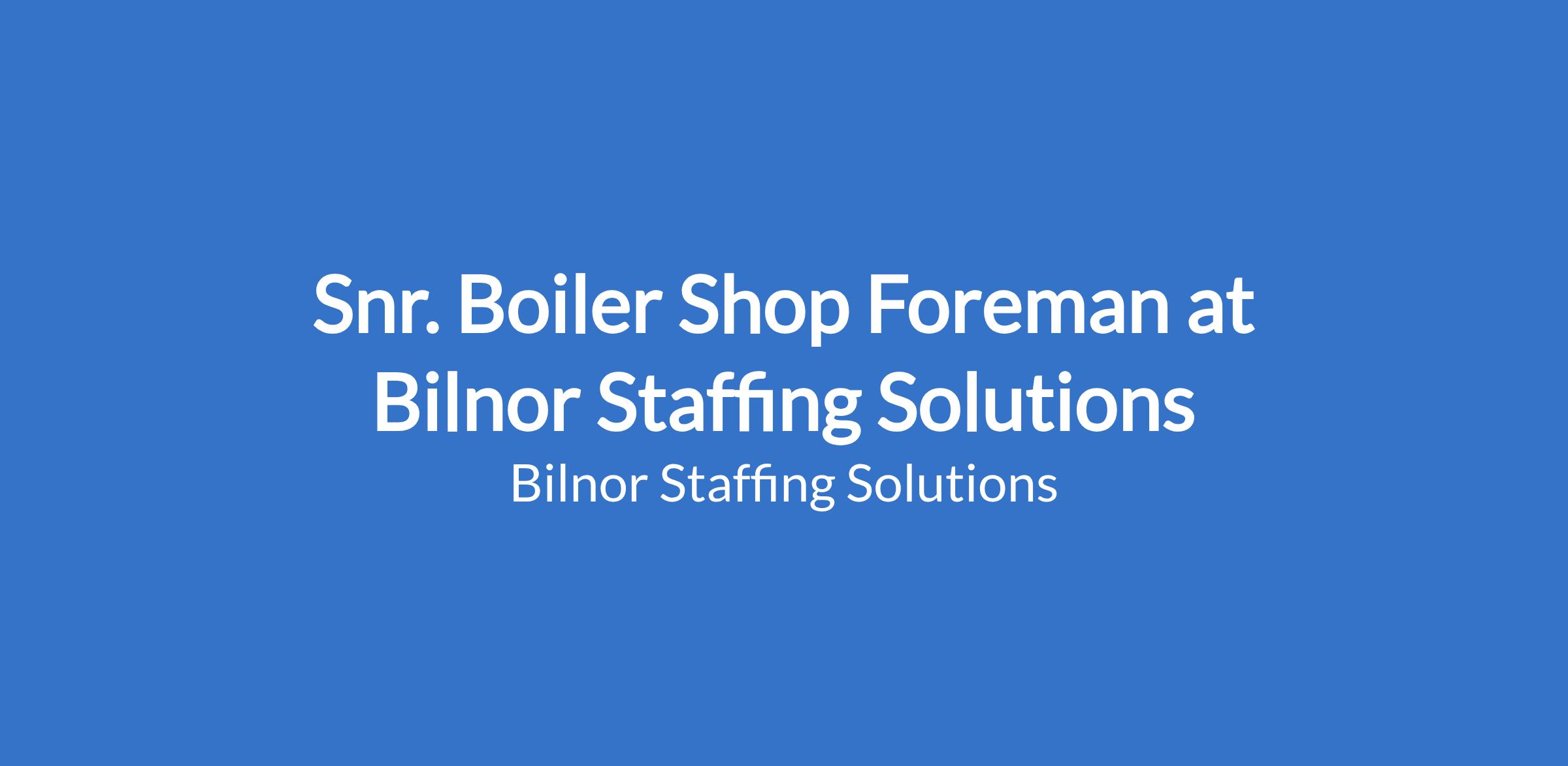 Bilnor Staffing Solutions' client is seeking an experienced Snr. Boiler Shop Foreman for position in Rustenburg, NW