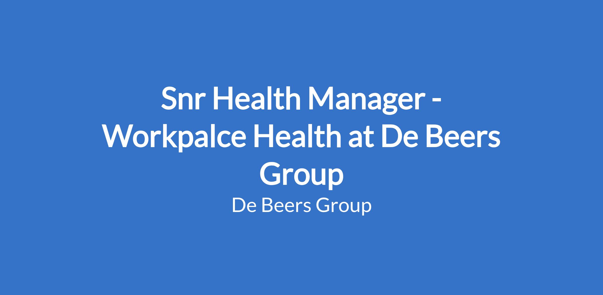 The role ensures that De Beers maintains worldÃÂâÃÂÃÂÃÂÃÂclass workplace health standards through:
