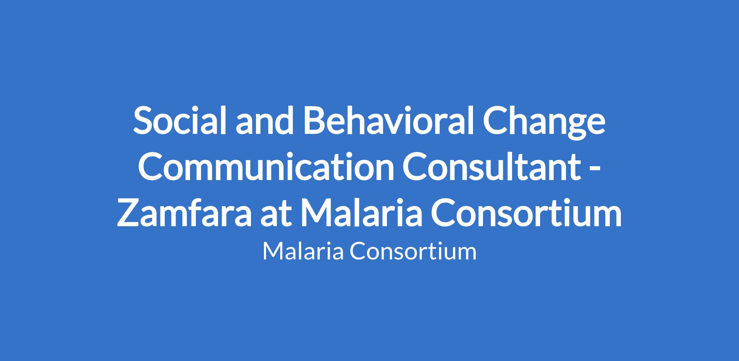 Social and Behavioral Change Communication Consultant - Zamfara at Malaria Consortium