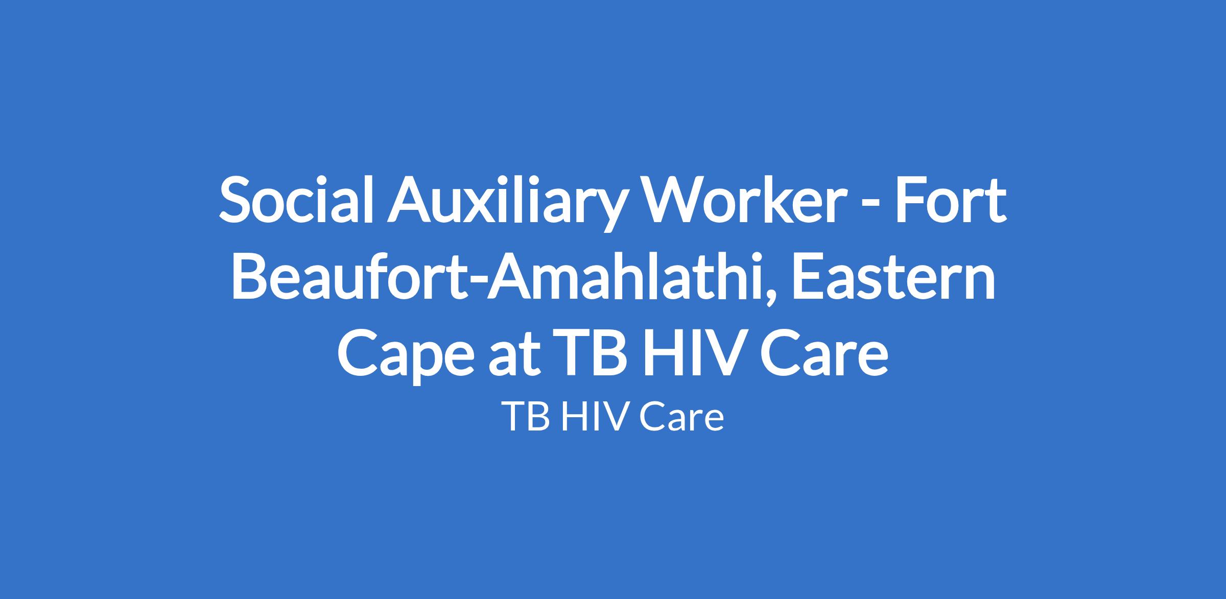 Social Auxiliary Worker - Fort Beaufort-Amahlathi, Eastern Cape at TB HIV Care