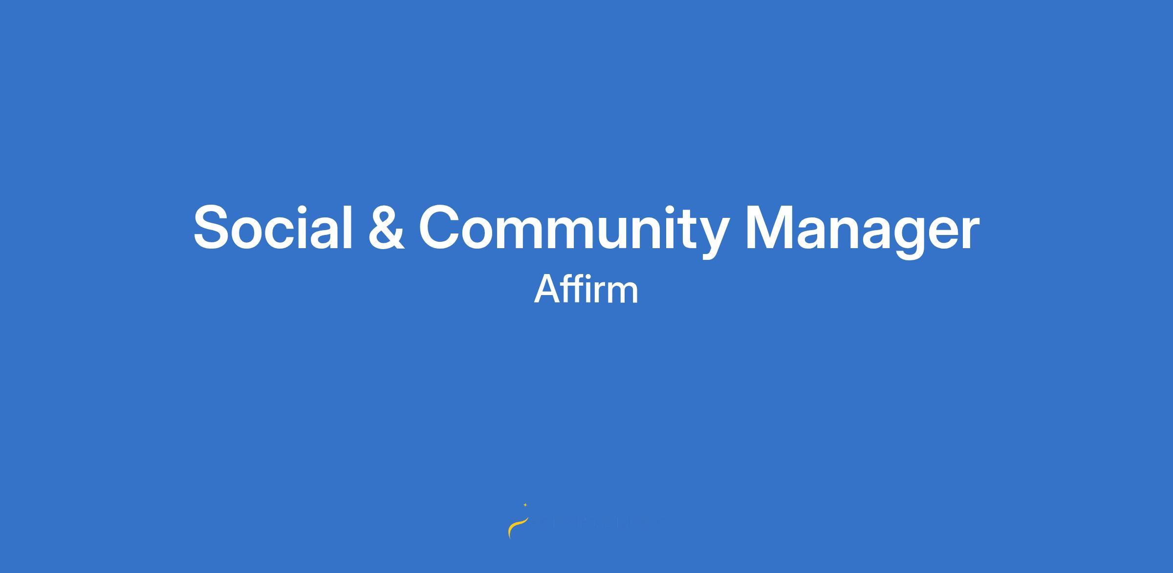 Weâre looking for a Social & Community Manager to join our Brand & Communications team. This isnât about running channels for the sake of it â itâs about shaping how Affirm participates in culture every single day.