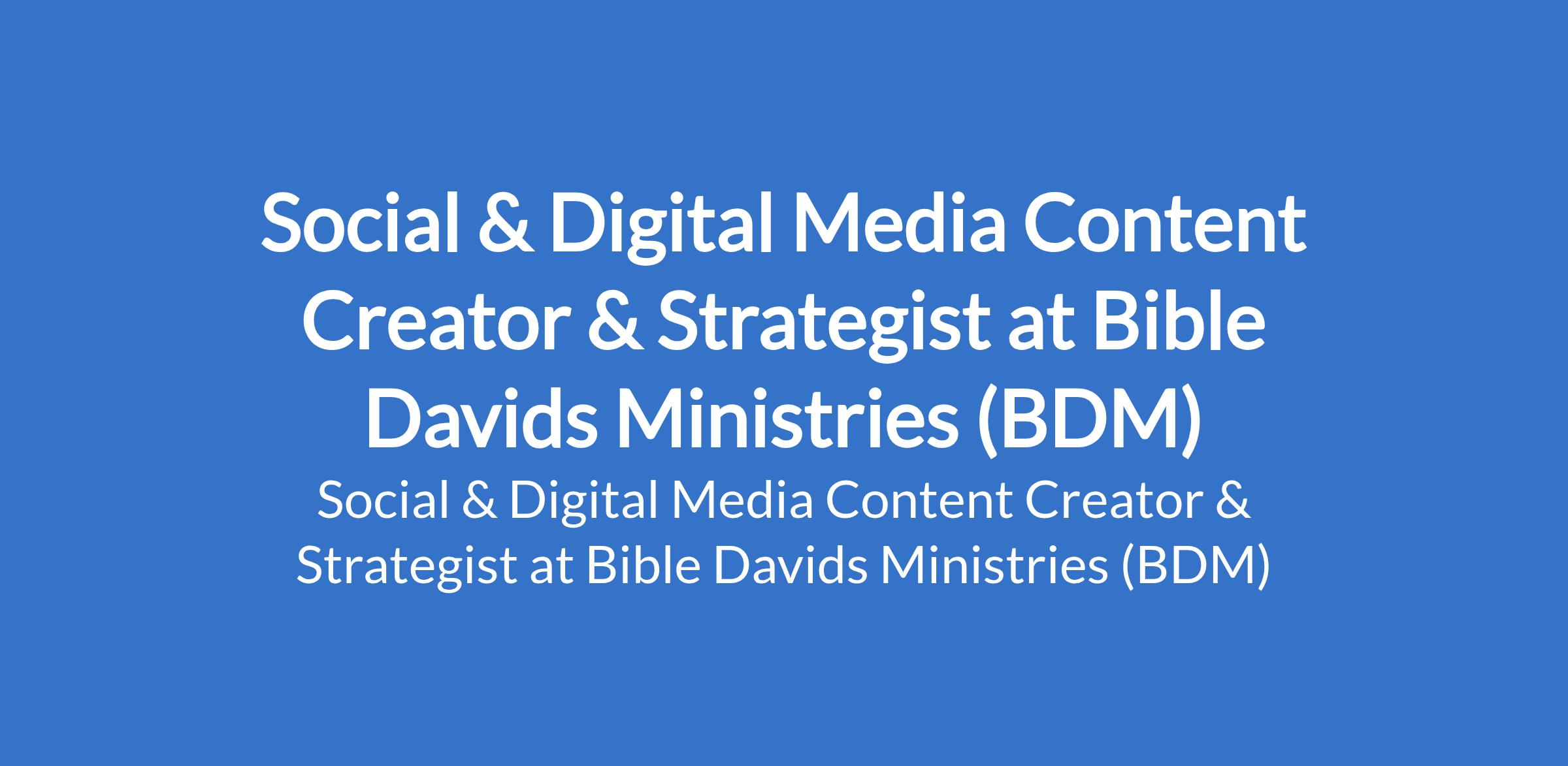 Bible Davids Ministries (BDM) is recruiting to fill the position of: Social & Digital Media Content Creator & Strategist. The position is located in Abuja. Interested candidates should possess a Bachelors Degree in Marketing, Media, Communications, or related field with 3+ years of proven experience managing social media accounts and/or YouTube channels.