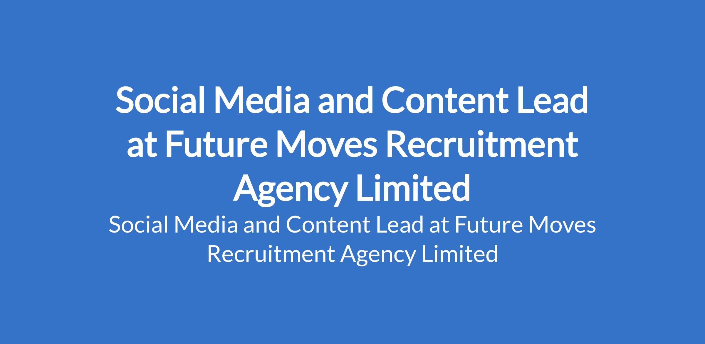 Future Moves Recruitment Agency Limited is recruiting to fill the position of: Social Media and Content Lead. The position is located in Surulere, Lagos State. Salary: N300,000 - N400,000 monthly. Interested candidates should possess relevant qualifications with 24 years of experience managing brand social media accounts.