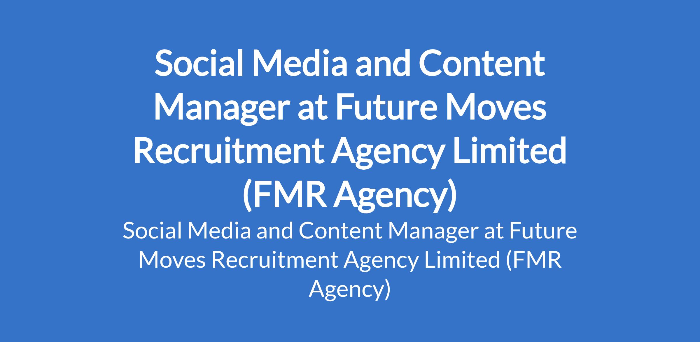 Future Moves Recruitment (FMR) Agency is recruiting to fill the position of: Social Media and Content Manager. The position is located in Ajah, Lagos State. Salary: N150,000 monthly. Interested candidates should possess relevant qualifications with 2+ years of experience in social media management and content creation.