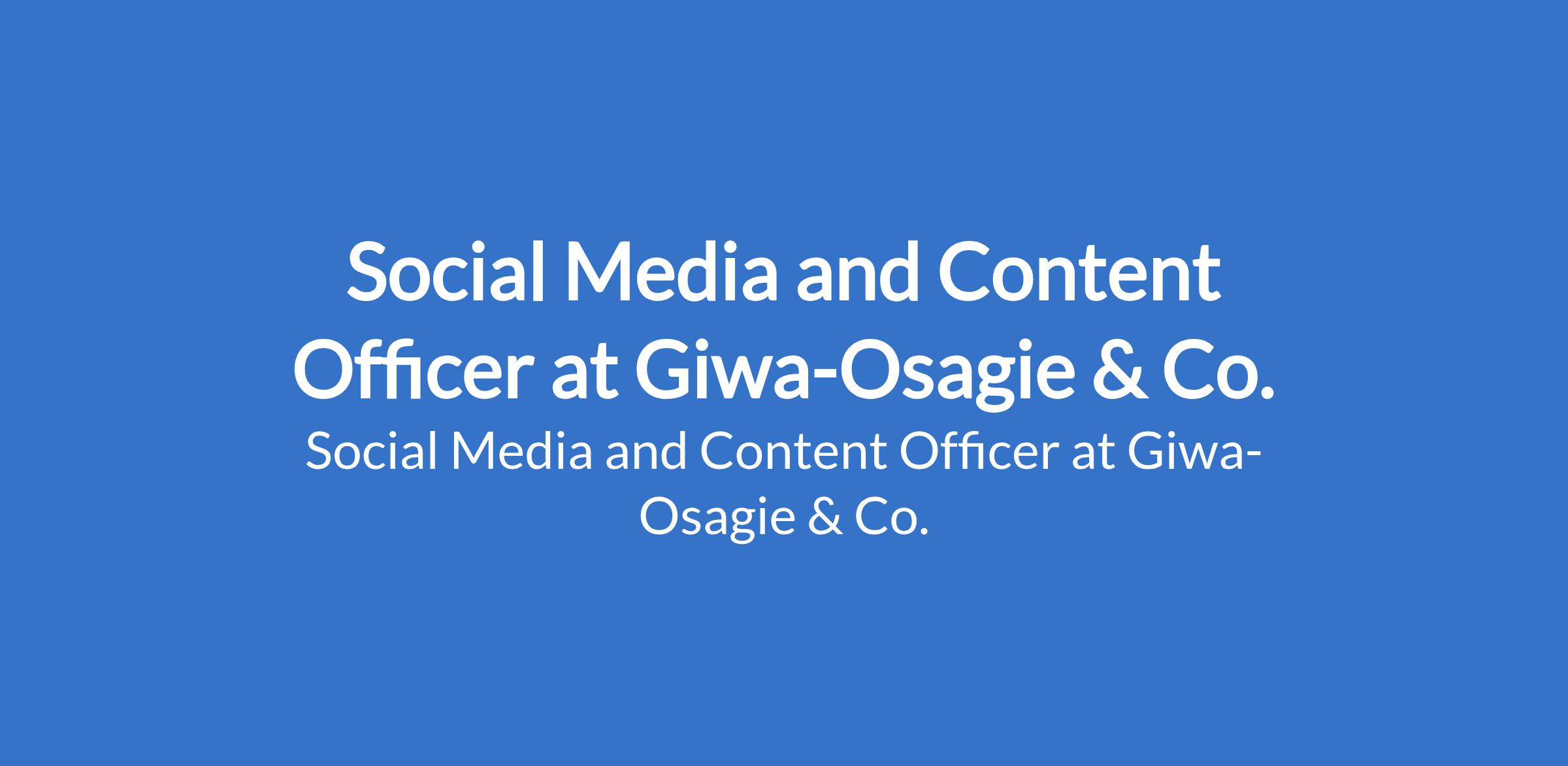 Giwa-Osagie & Co. is recruiting to fill the position of: Social Media and Content Officer. The position is located in Victoria Island, Lagos State. Interested candidates should possess a Bachelors Degree in Communications, Marketing, Law, Media, or a related field with a minimum of 3 years of experience in a digital marketing, content creation, or social media management role and must reside in Lagos State.