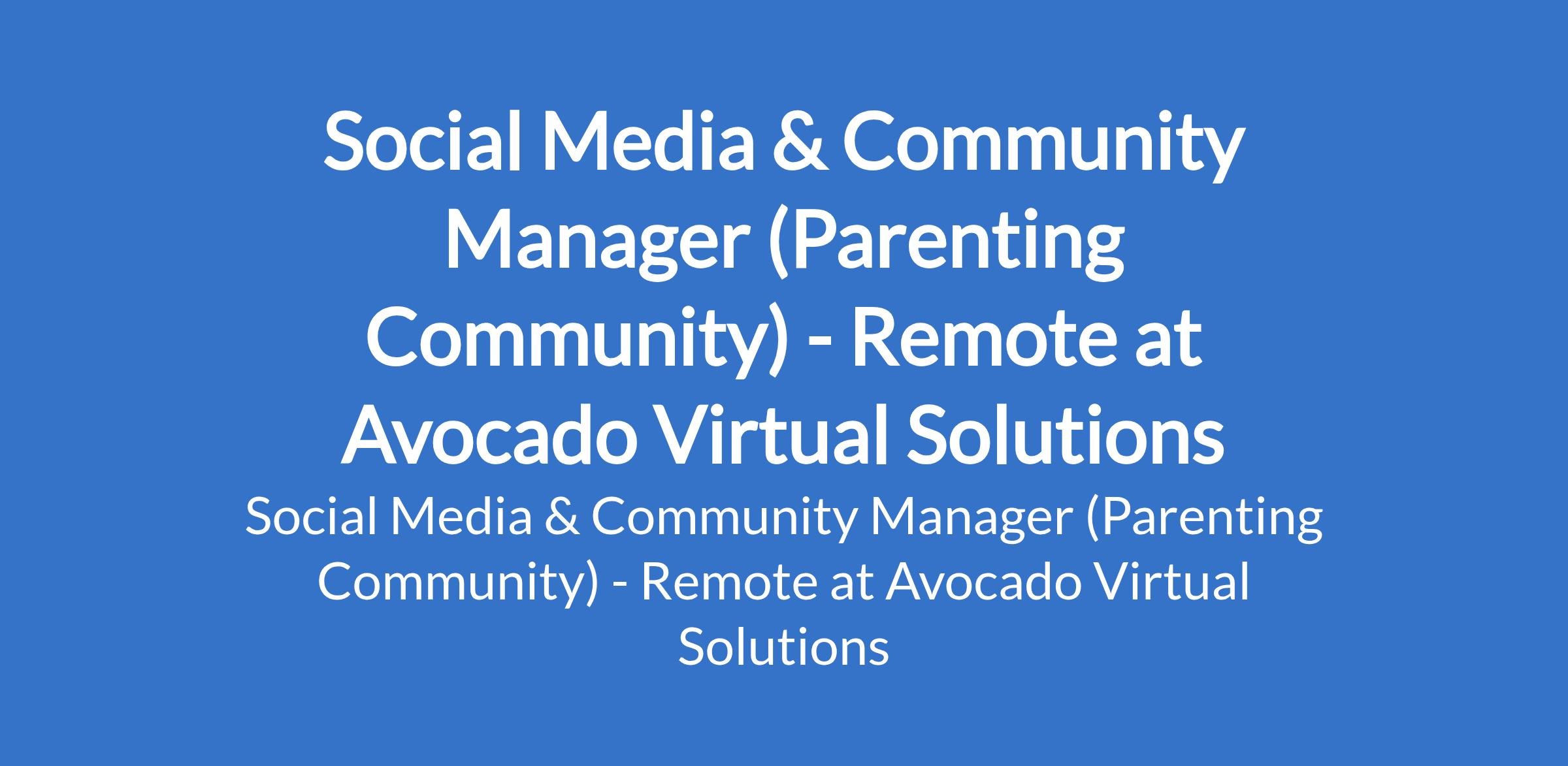 Avocado Virtual Solutions is recruiting to fill the position of: Social Media & Community Manager (Parenting Community). This is a Remote job. Interested candidates should possess proven experience in social media management, content creation, or community management.