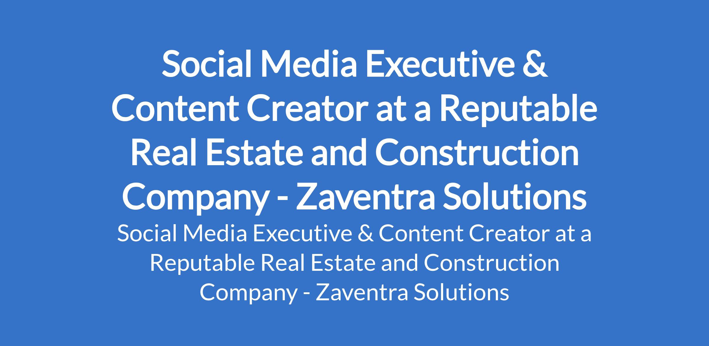 Zaventra Solutions - Our client, a reputable real estate and Construction company is recruiting to fill the position of: Social Media Executive & Content Creator. The position is located in Lekki Phase 1, Lagos State. Interested candidates should possess a Bachelors Degree in Marketing, Communications, Media, or related fields (or equivalent experience) with 2 4 years experience managing social media accounts and creating digital content.