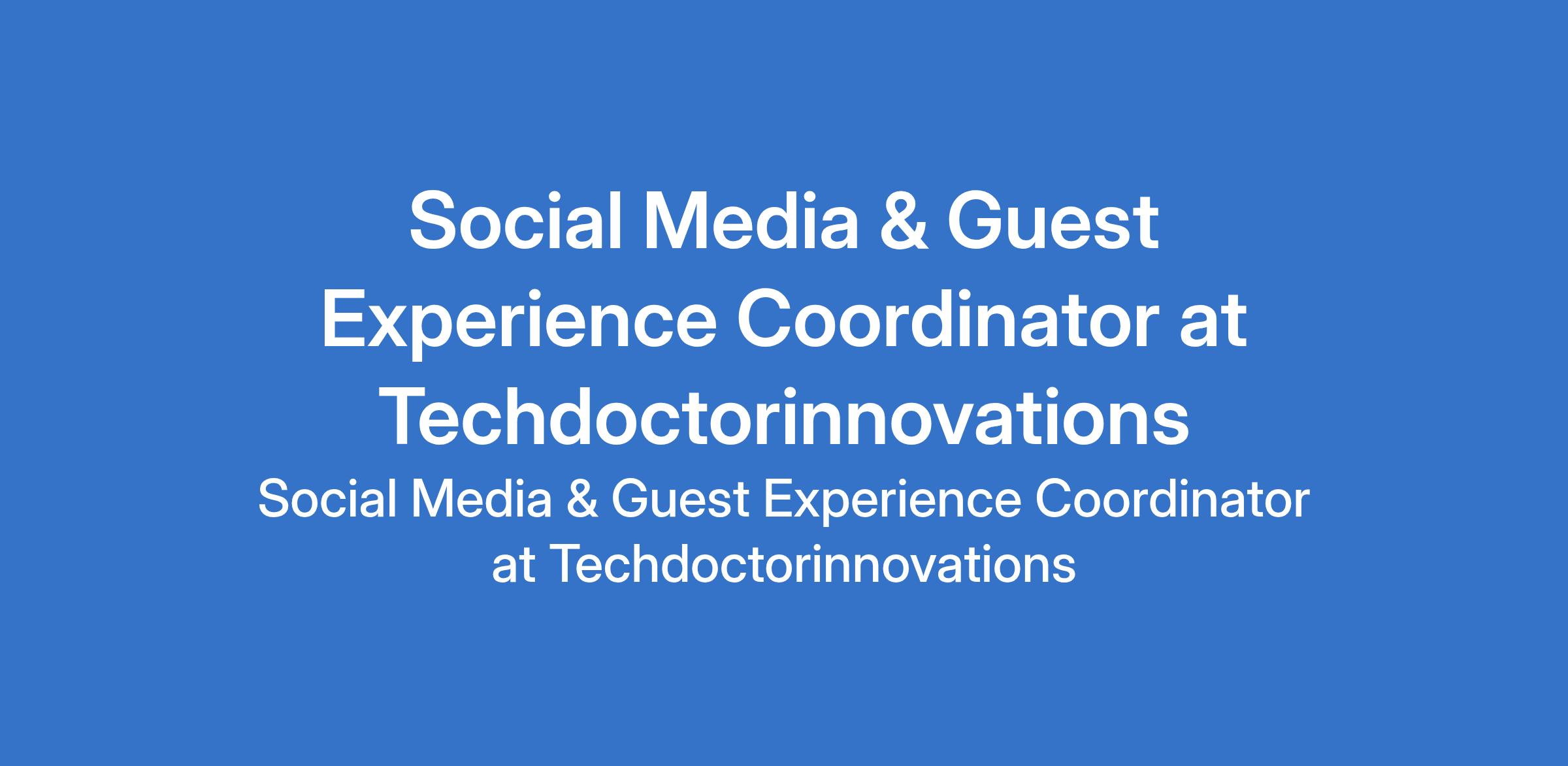 Techdoctorinnovations is recruiting to fill the position of: Social Media & Guest Experience Coordinator. The position is located in Soka, Oyo State. Salary: N100,000 per month. Interested candidates should possess an HND / B.Sc Degree in any related field.