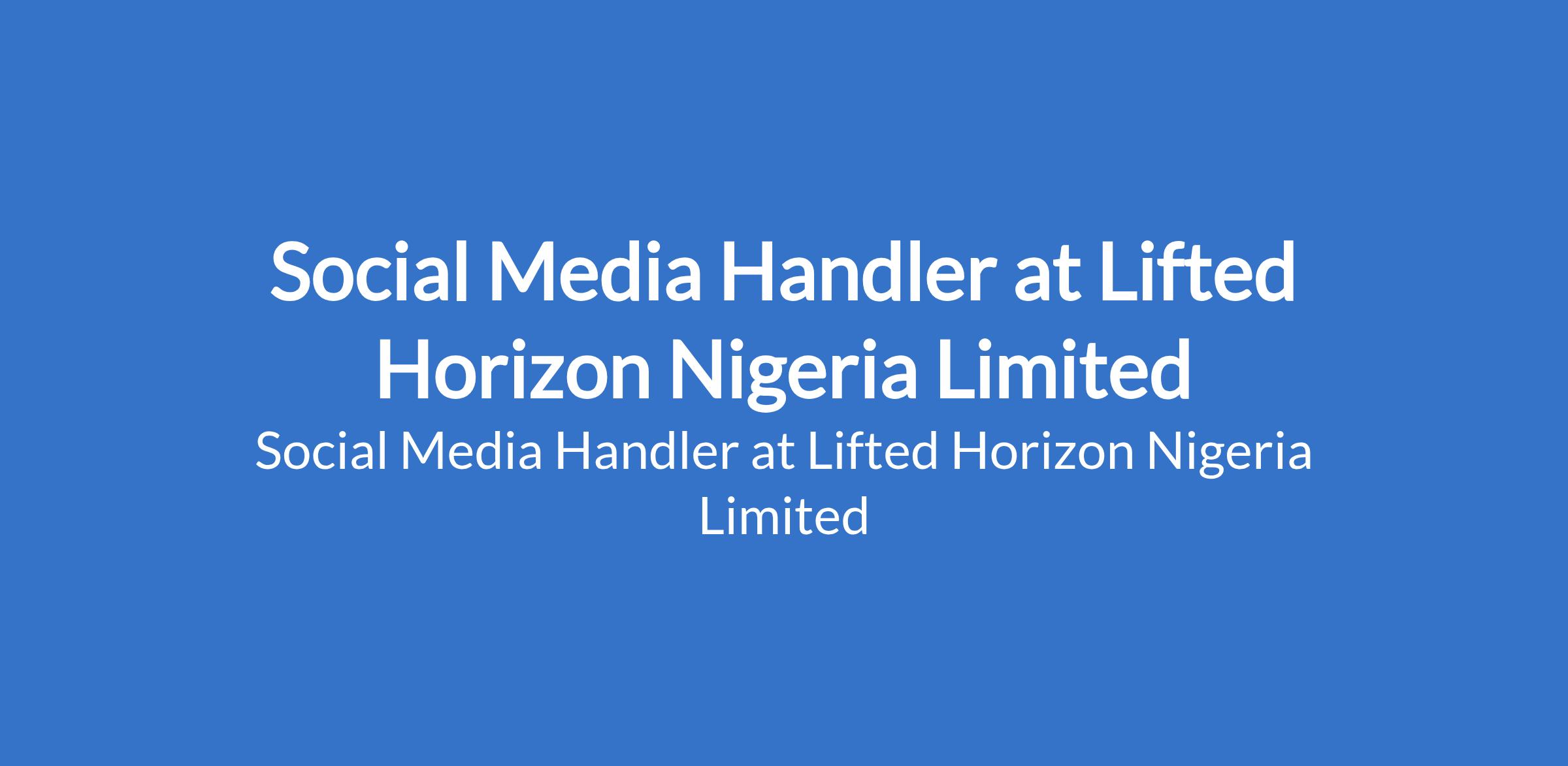 Lifted Horizon Nigeria Limited is recruiting to fill the position of: Social Media Handler. The position is located in Lagos State. Interested candidates should possess relevant qualifications with 1-2 years proven experience in social media management and content creation.