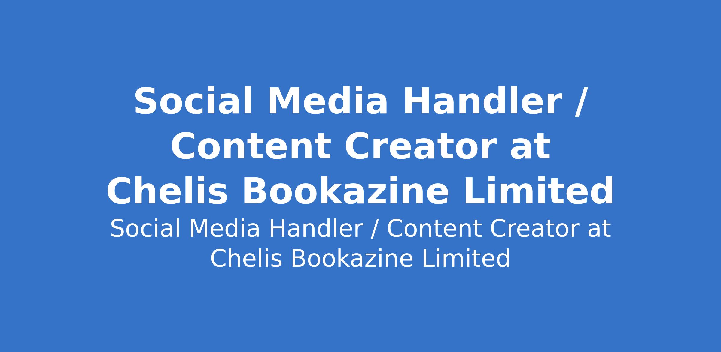 Chelis Bookazine Limited is recruiting to fill the position of: Social Media Handler / Content Creator. The position is located in Lagos Island, Lagos State. Salary: N80,000 - N100,000 per month. Interested candidates should possess an SSCE qualification with 1-2 years experience, and based on Lagos Island.