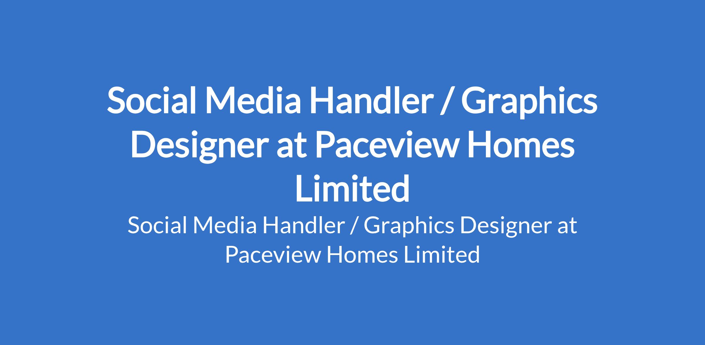 Paceview Homes Limited is recruiting to fill the position of: Social Media Handler/Graphics Designer. The position is located in Abuja (FCT). Interested candidates should possess a Bachelors Degree in Marketing, Graphic Design, or a similar field with experience creating posts, visuals, and videos for social media.