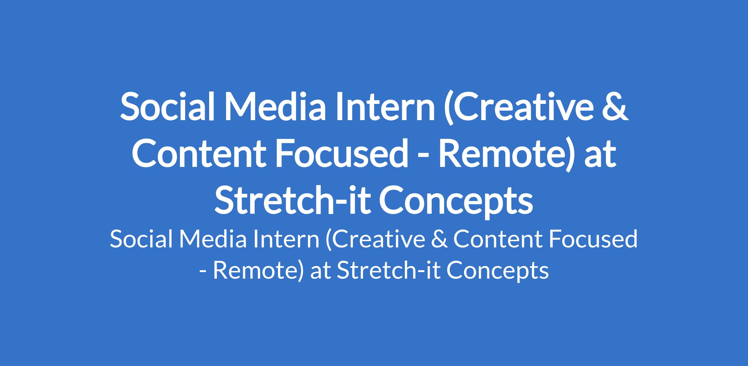 Stretch-it Concepts is recruiting to fill the position of: Social Media Intern (Creative & Content Focused - Remote). The position is located in Lagos State. Interested candidates should possess a B.Sc. in any relevant field with 1-2 years experience; NYSC Corps Members and fresh graduates are encouraged to apply.