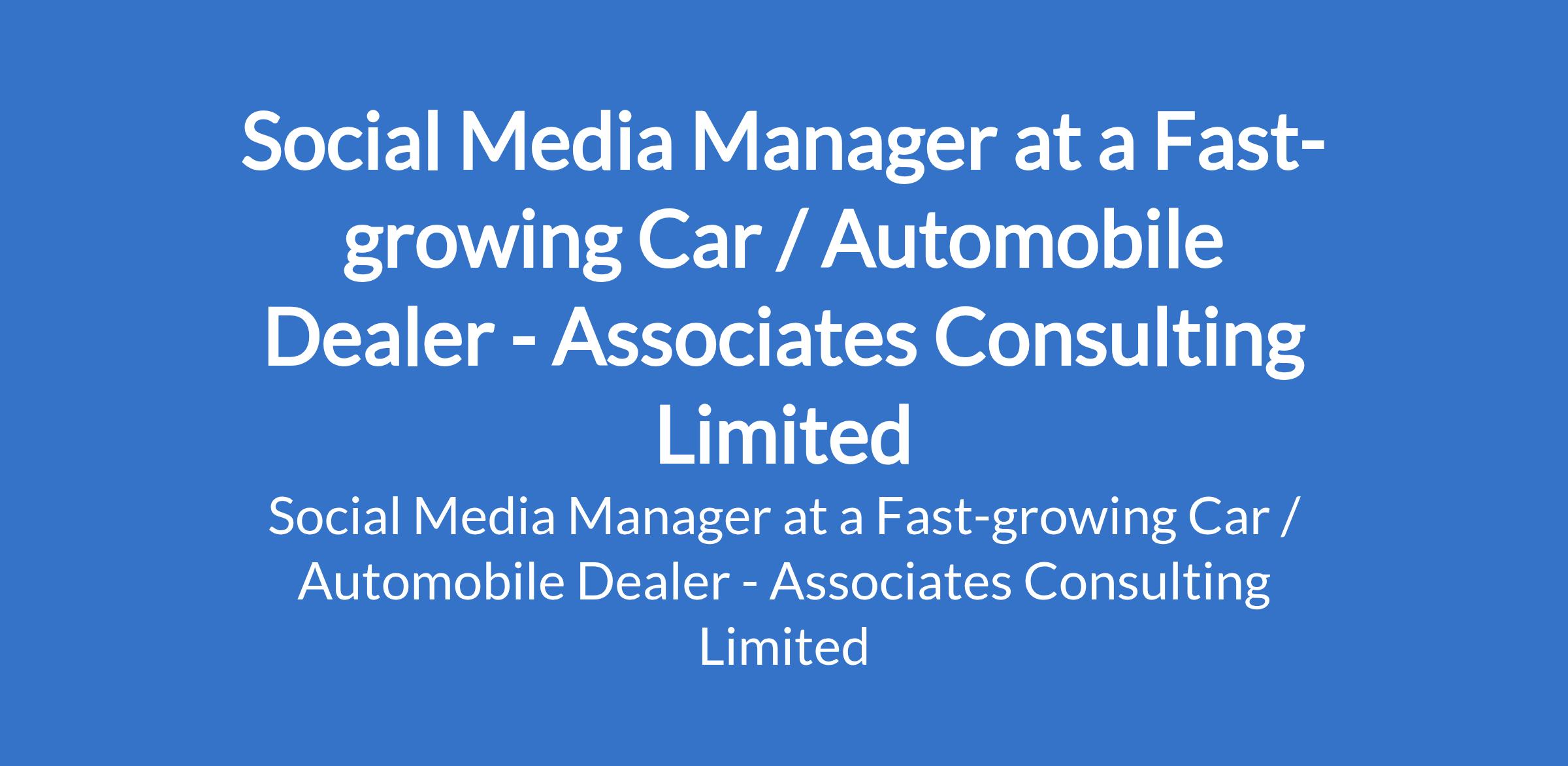 Associates Consulting Limited - Our client, a Fast-growing car/automobile dealer is recruiting to fill the position of: Social Media Manager. The position is located in Lekki, Lagos State. Interested candidates should possess relevant qualifications with 2 - 4 years of work experience.