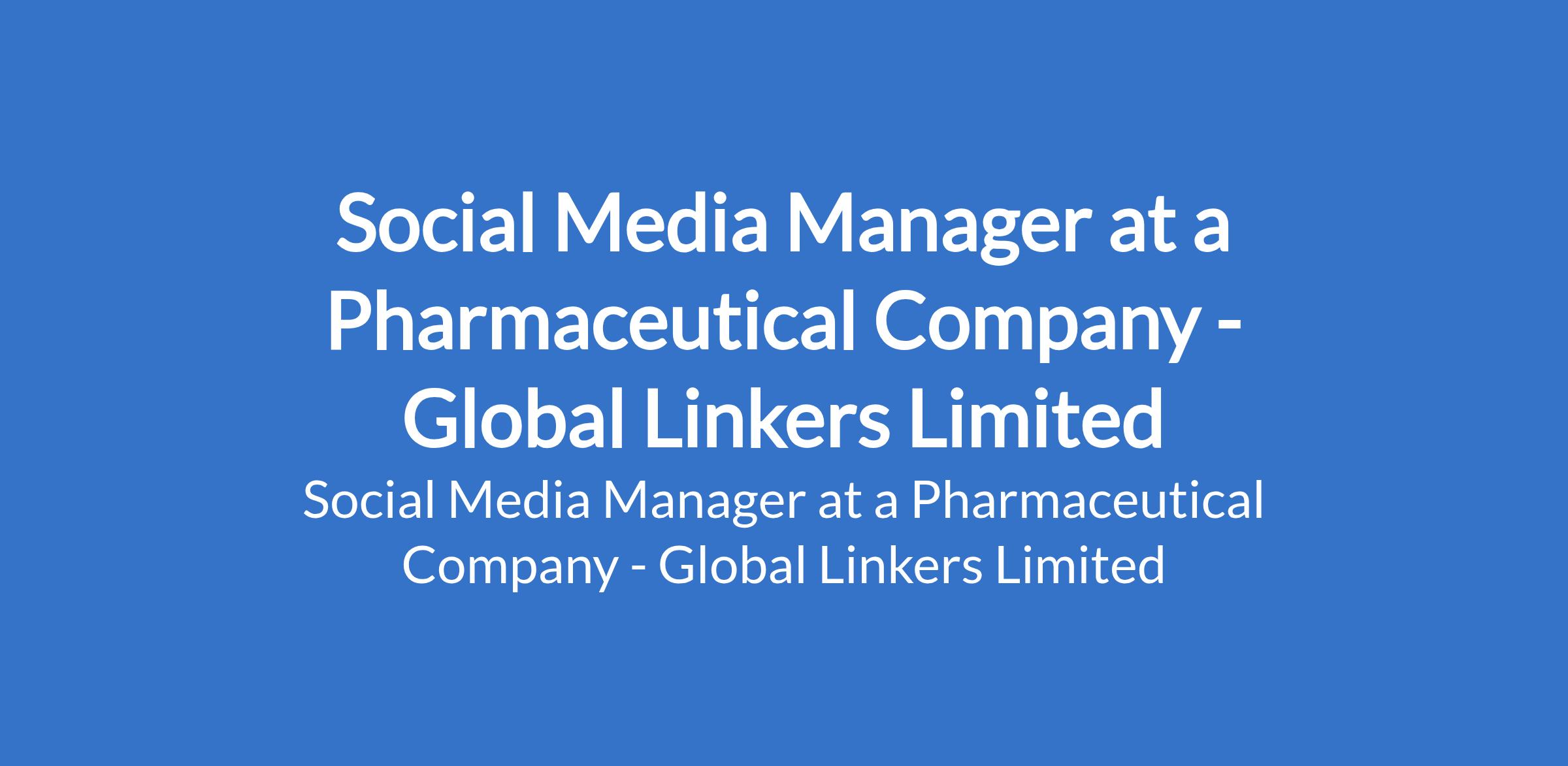 Global Linkers Limited - Our client, a pharmaceutical company is recruiting to fill the position of: Social Media Manager. Salary: N650,000 monthly. Interested candidates should possess a Bachelors degree in Marketing, Communications, Mass Communication, or a related field with 3 5 years of experience managing social media accounts (healthcare/pharma preferred).