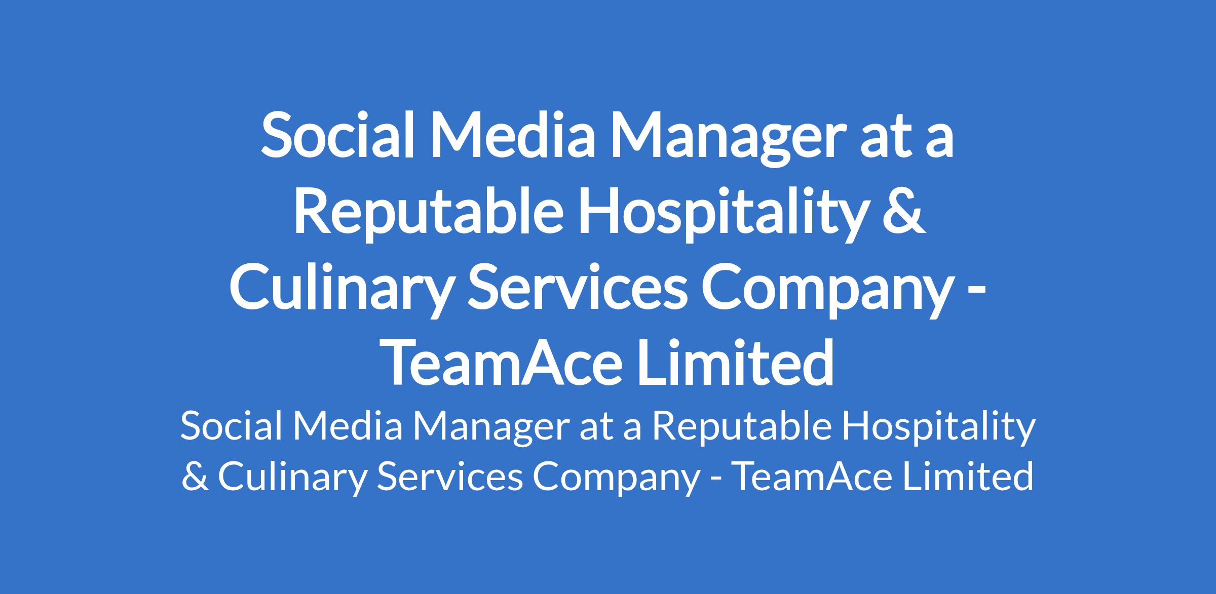 TeamAce Limited - Our client, a reputable organization in the Hospitality & Culinary Services sector is recruiting to fill the position of: Social Media Manager. The position is located in Ikoyi, Lagos State. Salary: N200,000 - N300,000 per month. Interested candidates should possess a Bachelors Degree in Marketing, Communications, or related fields with 2 - 4 years experience managing social media platforms.
