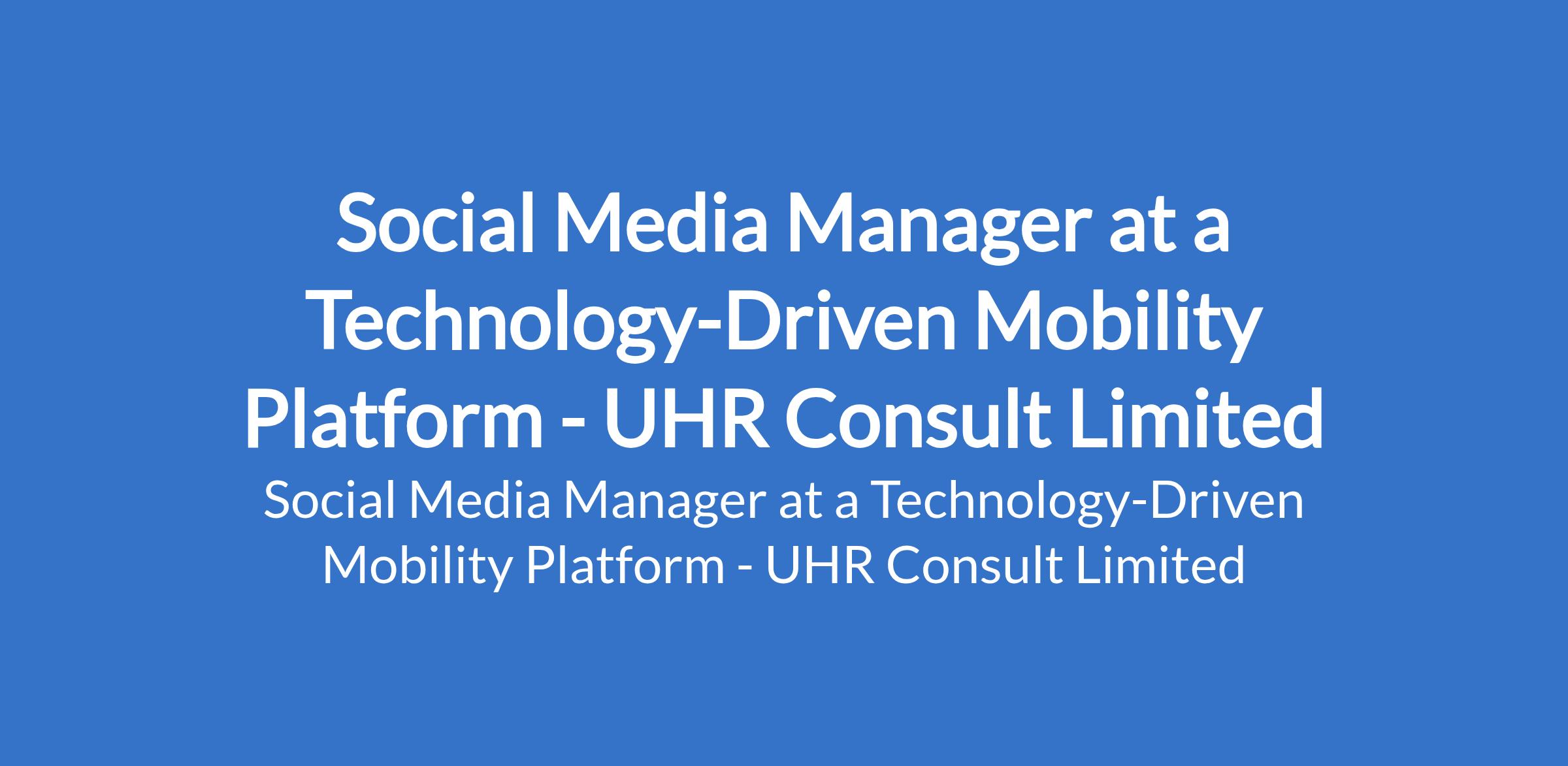 UHR Consult Limited - Our client is a technology-driven mobility Platform is recruiting to fill the position of: Social Media Manager. The position is located in Abuja (FCT). Salary: N200,000 per month. Interested candidates should possess relevant qualifications with 2+ years experience in social media management or content creation.