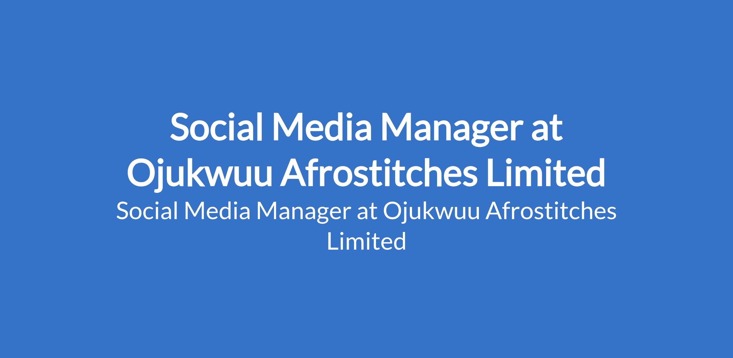 Ojukwuu Afrostitches Limited is recruiting to fill the position of: Social Media Manager. The position is located in Isolo, Lagos State. Salary: N80,000 - N100,000 / Month. Interested candidates should possess a Bachelors Degree in Marketing, Communications, or related fields with 14 years of experience managing social media accounts (preferably in fashion or lifestyle brands).