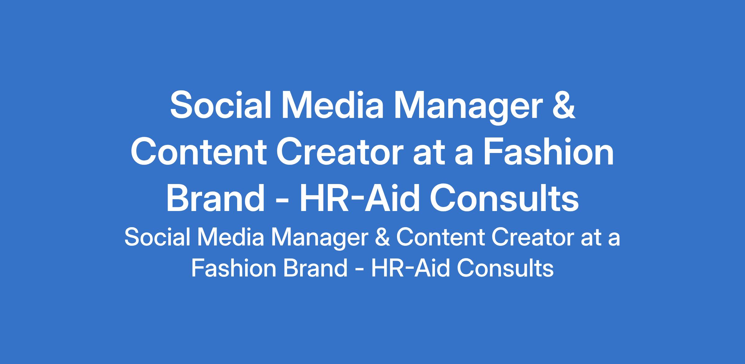 HR-Aid Consults - Our client, a Fashion brand is recruiting to fill the position of: Social Media Manager & Content Creator. The position is located in Lekki, Lagos State. Salary: N150,000 monthly. Interested candidates should possess a Bachelor's Degree with a minimum of 2 years experience.