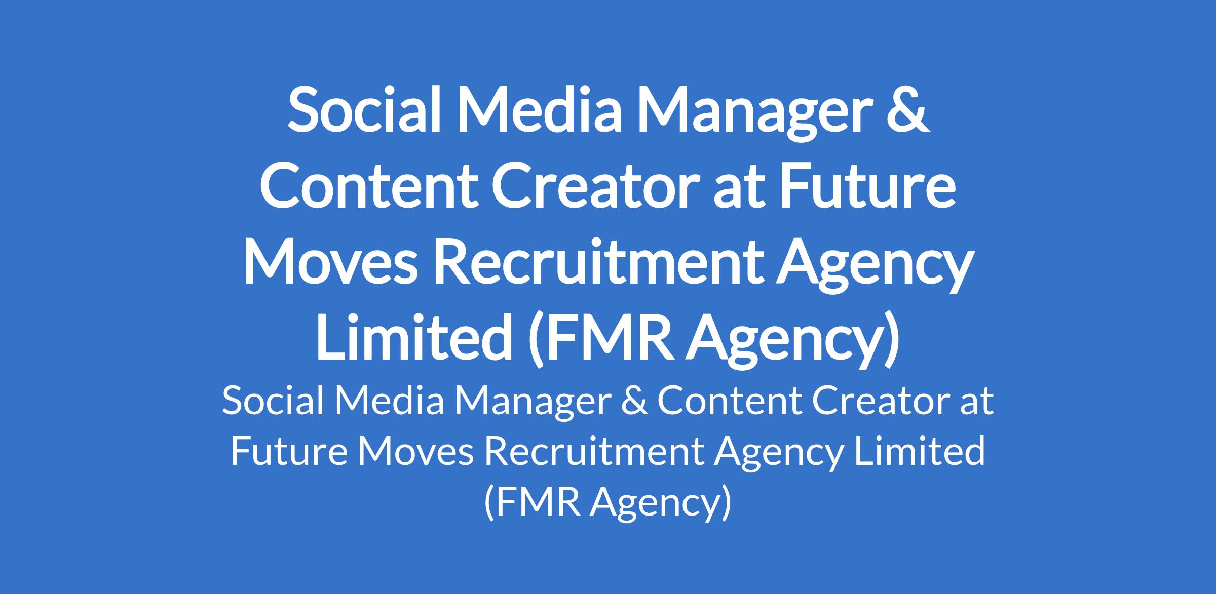 Future Moves Recruitment Agency Limited is recruiting to fill the position of: Social Media Manager & Content Creator. The position is located in Masha, Surulere, Lagos State. Salary: N300,000 - N350,000 per month. Interested candidates should possess relevant qualifications with 23 years professional driving experience.