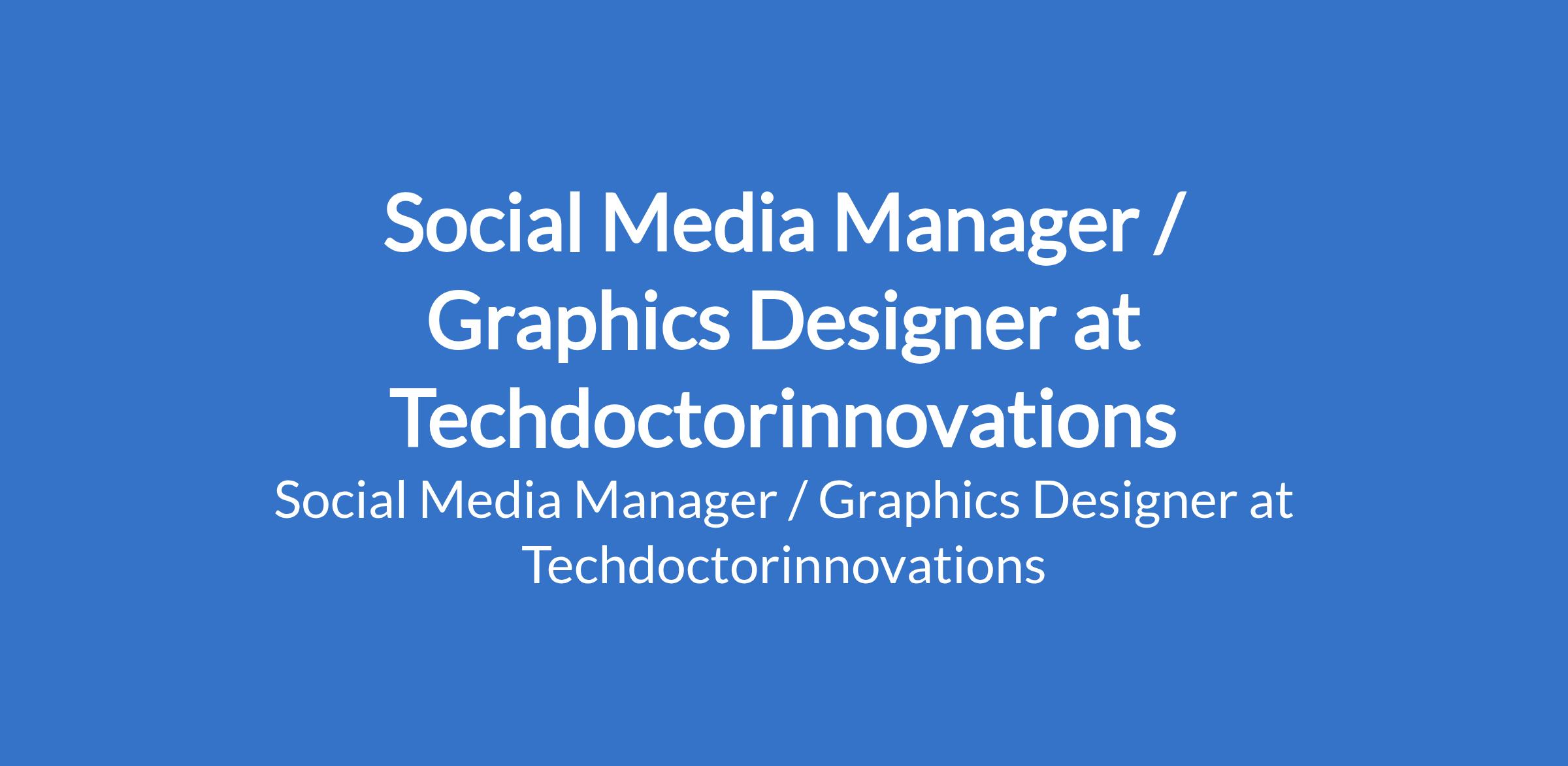 Techdoctorinnovations is recruiting to fill the position of: Social Media Manager / Graphics Designer. The position is located in Lekki, Lagos State. Salary: N150,000 - N200,000 monthly. Interested candidates should possess an HND / B.Sc Degree in any field.