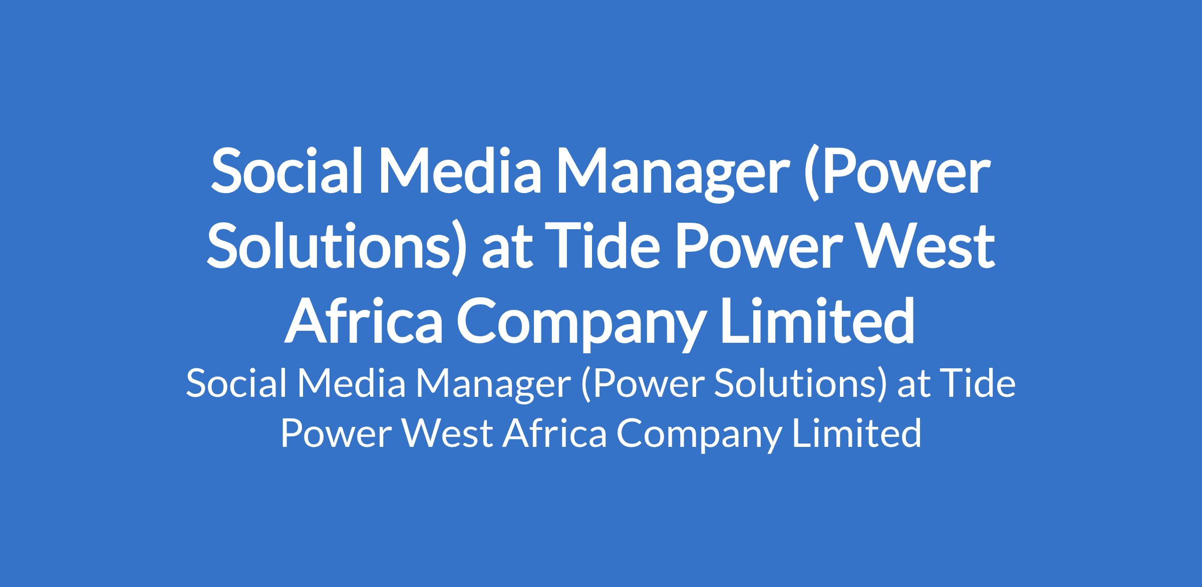 Tide Power West Africa Company Limited is recruiting to fill the position of: Social Media Manager (Power Solutions). The position is located in Isolo, Lagos State. Salary: N150,000 - N250,000 per month. Interested candidates should possess relevant qualifications with a minimum of 2 3 years experience managing social media for a business or brand.