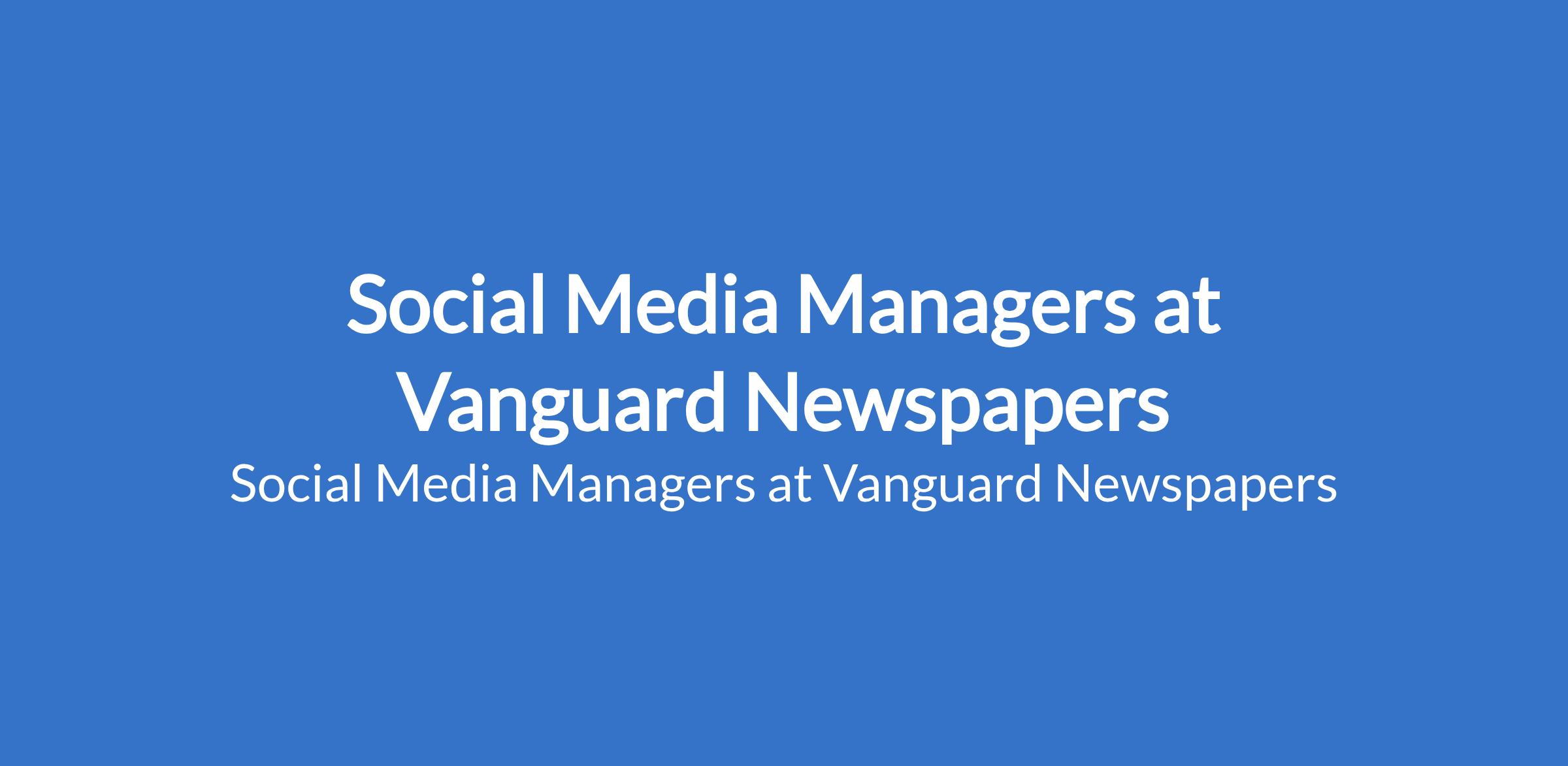 Vanguard Newspapers is recruiting to fill the position of: Social Media Manager. The position is located in Lagos State. Interested candidates should possess relevant qualifications and should be proficient with Instagram, X, Facebook, TikTok, Canva, InShot and YouTube.