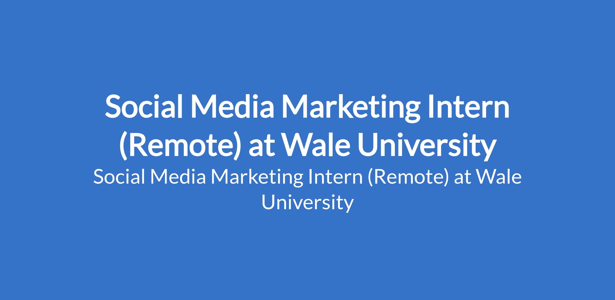 Wale University is recruiting to fill the position of: Social Media Marketing Intern. This is a Remote Position. Interested candidates should possess relevant qualifications.