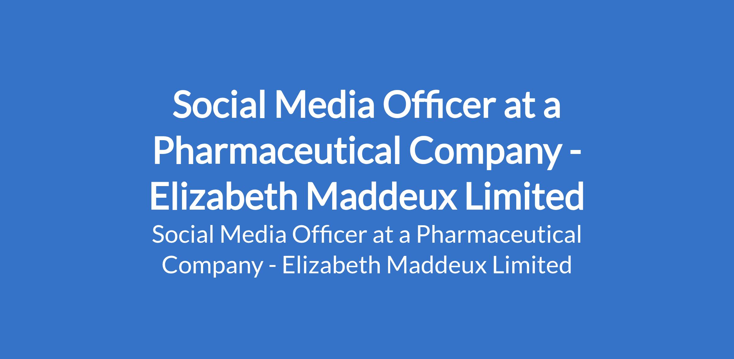 Elizabeth Maddeux Limited - Our client in the pharmaceutical industry is recruiting to fill the position of: Social Media Officer. The position is located in Egbeda, Lagos State. Salary: N150,000 - N200,000 monthly. Interested candidates should possess a Bachelors Degree in Marketing, Communications, Mass Communication, Pharmacy, Life Sciences, or a related field with 1 3 years of experience in social media management, preferably within healthcare or pharmaceutical industries.