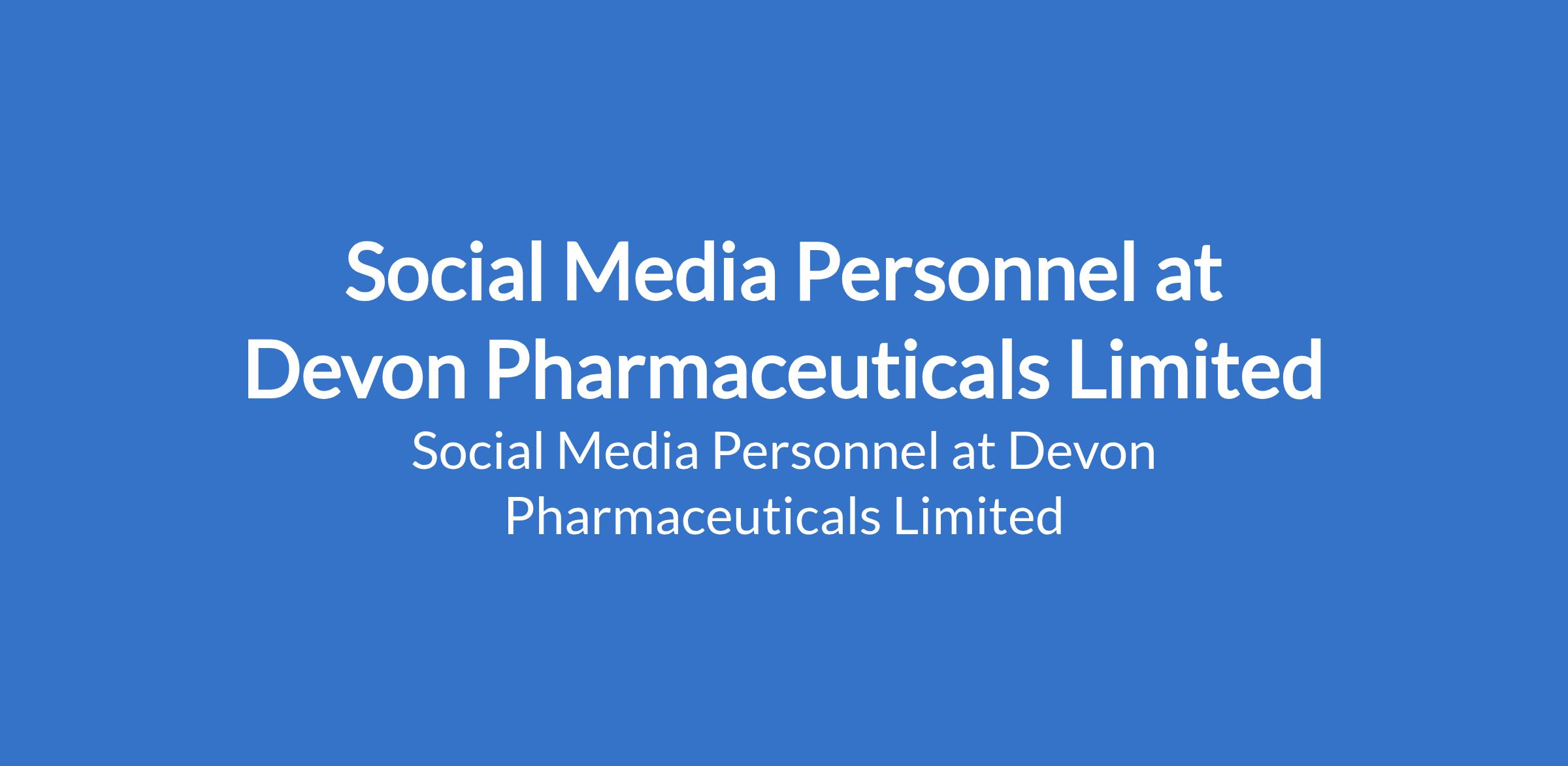 Social Media Personnel at Devon Pharmaceuticals Limited