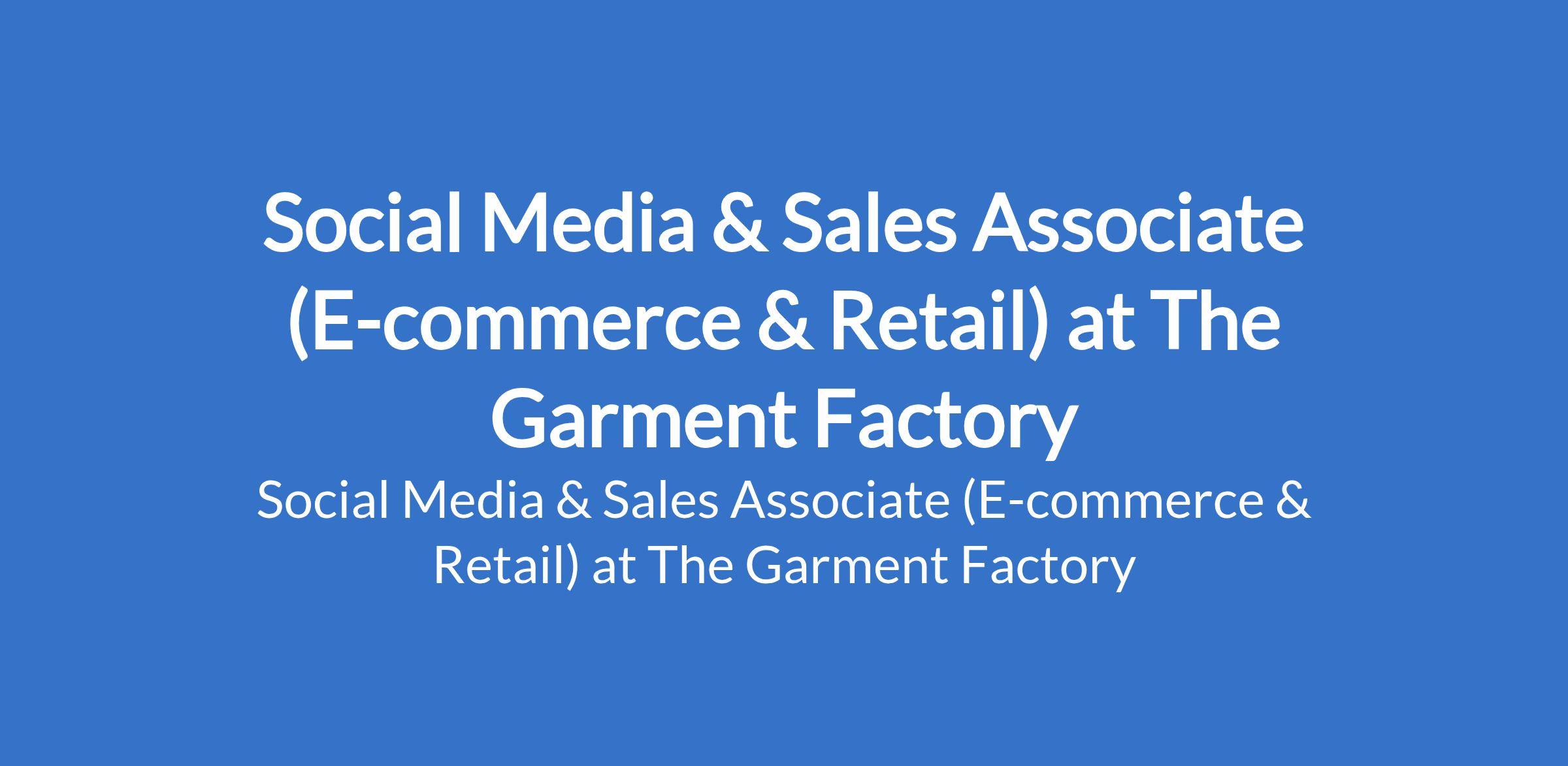 Social Media & Sales Associate (E-commerce & Retail) at The Garment Factory