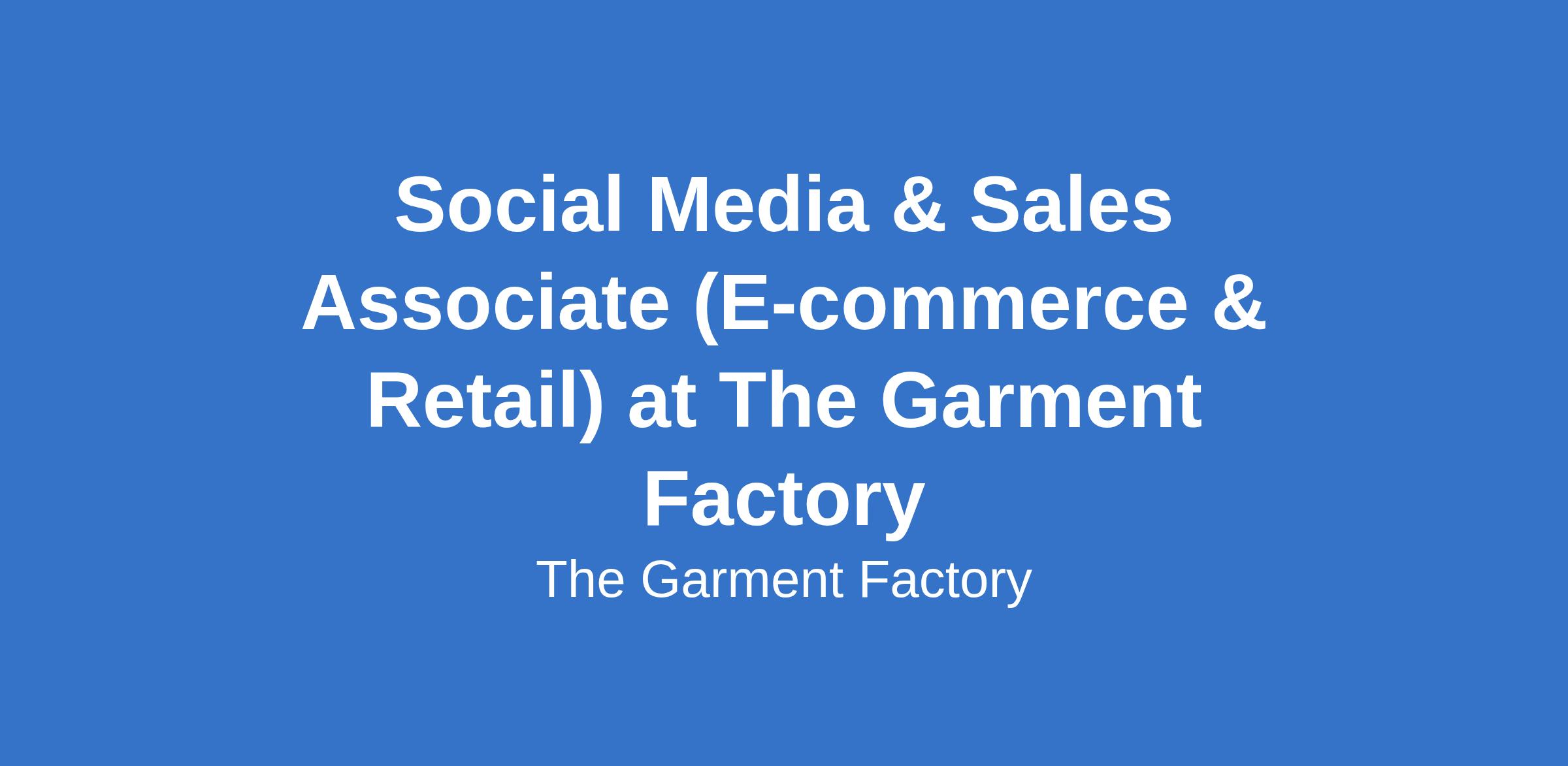 Social Media & Sales Associate (E-commerce & Retail) at The Garment Factory